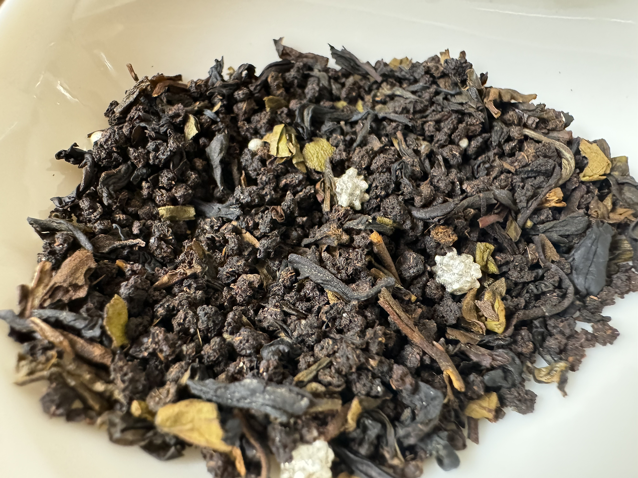 개봉하면 루피시아 특유의 그 휘발성 있는 가향이 살짝 느껴지면서 쇼콜라와는 조금 다른 베이커리류의 가향이 느껴진다. 쇼콜라 쪽은 카카오닙스가 좀 섞인 향이 날 텐데 여기는 쿠키류의 향이 나기 때문에 확실히 다른 느낌이다. 찻잎을 덜어내 보면 아쌈 ctc가 주를 이루면서 케냐 브로큰이 종종 보이는 느낌의 건엽이다. 종종 보이는 약간 연한 잎은 뭐지 싶다. 일단 가장 먼저 눈이 가는 것은 아무래도 금평당에 은박을 입힌듯한 은색 별사탕과 동그란 은색 구슬인 아라잔이 깨알같이 들어있다. 정말 눈이 오는 것처럼 여기저기 은박의 토핑들이 빛이 난다. 별사탕 모양은 금평당은 아니고 (보통 금평당을 사용했다면 원재료에 금평당이라고 표시를 한다) 조금 큰 아라잔을 금평당 모양으로 만들어 둔 것 같다. 물론 흰색 금평당에 은박을 씌운걸 수도 있는데 그렇다면 쪼갰을 때 조금 더 투명했어야 하지 않나 싶다. 쪼개봤단 얘기. 아무튼 별사탕 모양의 저기서 벗겨져 나오는 은박이 꽤 사이즈가 넓적해서 우릴 때 홍차엽과 함께 팟을 날아다니는데 눈 오는 것처럼 정말 예쁘다. 옛날엔 아라잔이라고도 안 하고 은침, 은단이라고 불렀는데 아무튼 어린 시절엔 그 모습이 너무 신기하고 은박이 들어갔다는 것 자체로도 너무 신기했어서 나를 참 두근거리게 만들었었다. 좀 전에 이야기한 것처럼 찻잎이 점핑되는 게 잘 보이는 티팟에서 우려내면 아라잔 녹아서 흩날리는 은박들을 볼 수 있으니 소소한 재미도 놓치지 말자.