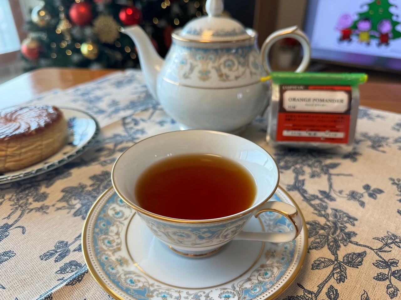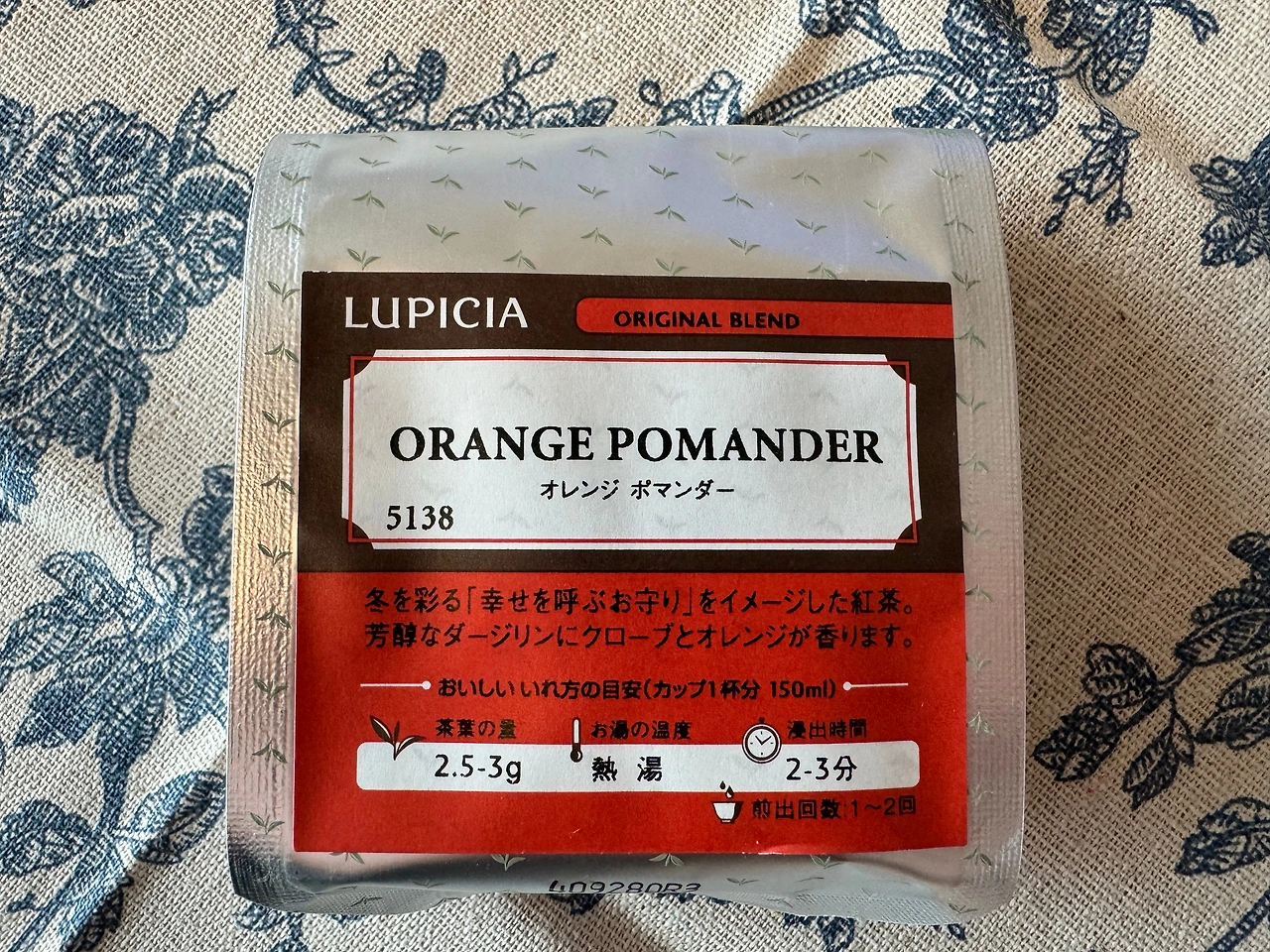 크리스마스가 며칠 지났지만 아직도 그 여운이 남아있는 집안을 서성이다가 이제 때가 되었나 싶어 오렌지 포맨더를 꺼냈다. 루피시아의 크리스마스 티 특집으로 계속 소개했던 차는 flavored tea라고 적힌 가향차 라인이었는데 오늘 꺼낸 오렌지 포맨더는 original blend 라인이다. 찻잎에 직접 가향을 입힌 것과 아닌 것으로 구분할 수 있는데 오렌지 포맨더는 찻잎에는 가향을 하지 않은 모양이다. 사실 블랜딩 정보만 보고 이 차는 축제가 끝난 뒤 천천히 여운을 즐기고 싶다는 마음이 들어 골라두었다. 물론 재료의 조합은 충분히 크리스마스 티로 분류할 수 있는 조합이다. 아껴두었던 엥콜을 시작해 본다. 50g 봉입 750엔, 상미기한은 2년으로 11월~12월에만 파는 계절 한정이다.