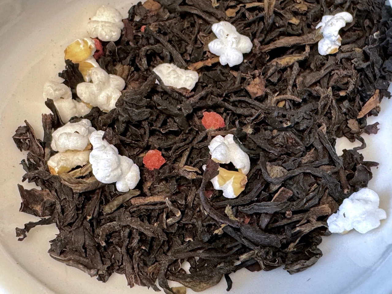매화나 복숭아의 달콤한 향기가 꽃피듯 퍼져나가는 홍차. 운을 불러오는 매화를 이미지 한 튀밥과 볶은 쌀을 토핑.