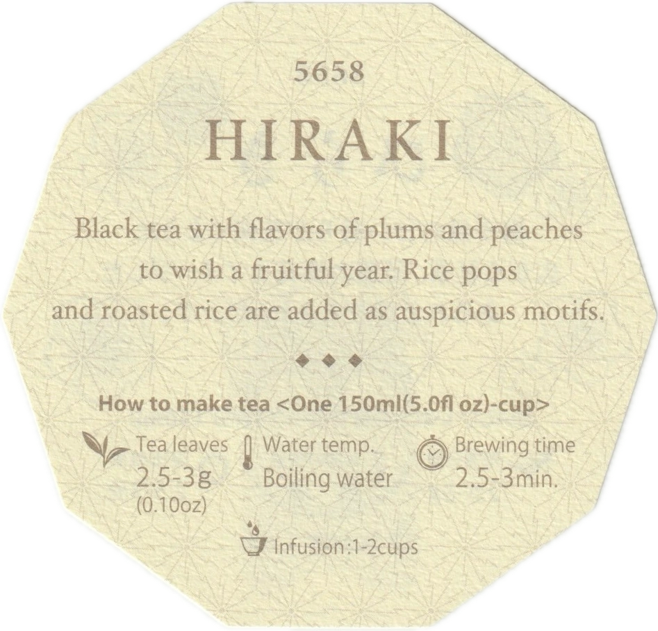 루피시아의 새해 대표 블랜딩인 히라키는 새해 운을 불러준다는 매화 부적을 모티브로 한 블랜딩이다. 겨울철 대표 꽃인 매화를 쌀 튀밥으로 표현한 재미있는 차인데 이 또한 매년 한정 일러와 함께 나오는 걸 구경만 해보다가 기회를 노려 구입했다. 오랫만에 보부상님께서 활약을 해주셨는데 일본 다녀오시는 길에 신년 특집 일러 세 개와 청룡의 해 한정도 둘 사다 주셨다. 그게 벌써 한 달이 되어가는데 새해가 될 때까지 기다렸던 신년 특집 바로 시작. 히라키는 11월~2월 한정이라지만 실제로는 12월이 되어야 나오는 것 같다. 구입해야 하는 시기가 애매하고 짧아서 보통은 마시질 못했다가 이번엔 신경을 곤두세운 덕에 성공. 50g 한정 디자인 캔입은 1080엔, 봉입은 700엔으로 상미기한은 1년이다.