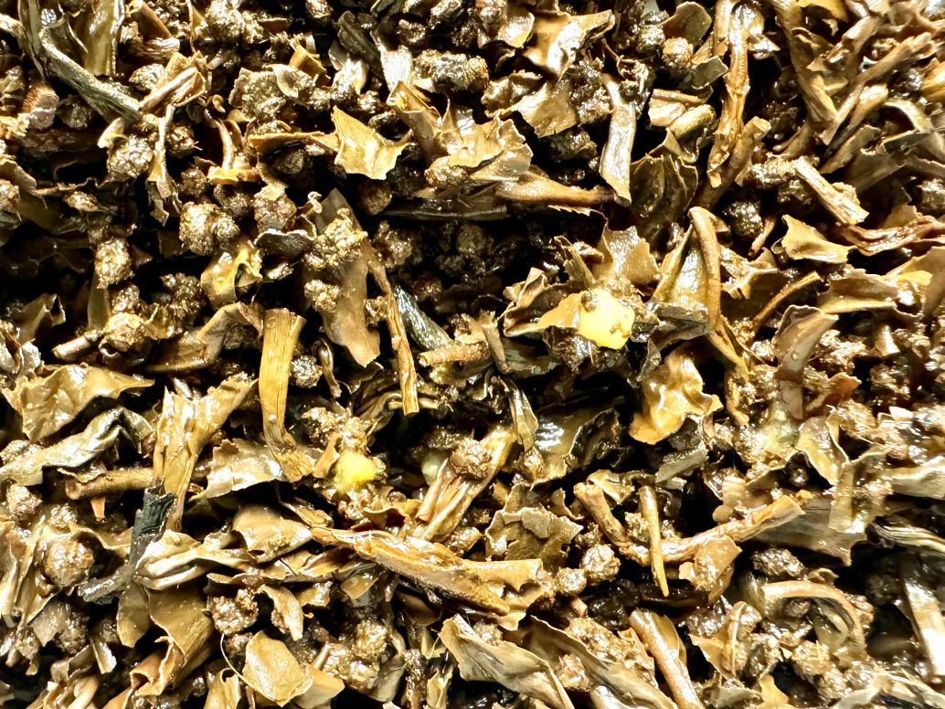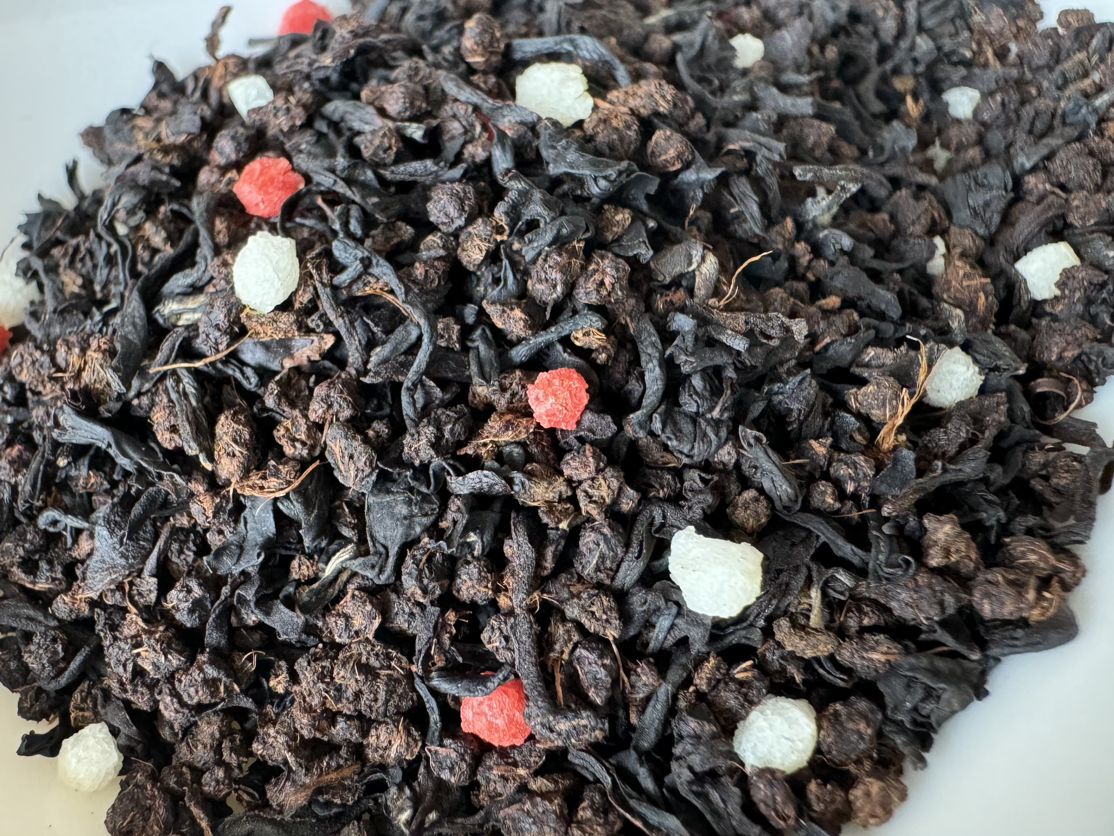 봉지를 개봉하면 풍선껌스런 루피시아의 휘발성 딸기가향이 물씬 올라오면서 그 뒤로 희미하게 바닐라 같은 달콤함이 함께 섞여 나온다. 조금 더 자세히 코를 대보면 휘발성 가향과 달달한 향 뒤로 찻잎에서 풀내가 솔솔 난다. 인공딸기에 풀내 조합이면 너무나도 봄의 이미지여서 잠시 설렌다. 건엽을 덜어내 보니 흰색과 빨간색의 아라레가 가장 먼저 눈에 띈다. 스트로베리 쇼트케이크가 연상되는 귀여운 아라레. 아라레가 들어있으니 우려낸 뒤 우림팟을 빨리 씻어내는 게 좋겠다. 안 그러면 점점 끈적하게 변해서 들러붙어버리니 설거지가 조금 귀찮아진다. 잎의 대부분은 아쌈 씨티씨로 밀크티를 겨냥한 블랜딩 의도가 명확해 보인다.