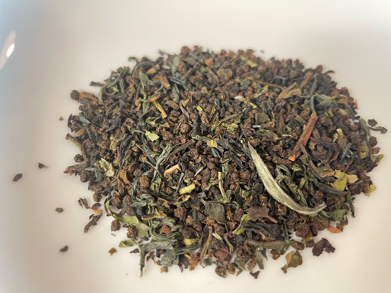 개봉해 보니 다즐링 향이 제일 강하게 난다. 풋풋한 풀내. 근데 털 달린 백차잎도 보인다. 동글동글 씨티씨도 보인다. 엣?에엣?? 심지어는 아무리 봐도 그냥 초록초록한 녹차도 보인다. 이걸 어떻게 우리나 다시 라벨을 확인한다. 2.5~3그램, 뜨거운 물, 3분이라고 적혀있다. 물을 끓이면서 고민이 깊어진다. 이거 물을 한 소끔 식혀야 하나 그냥 끓을 때 부어야 하나. 열탕인데 80도? 90도? 아님 그냥 100도? 한참 고민하다가 물 한 김 식히는 걸 기다리기 귀찮아서 그냥 루틴대로 우린다.