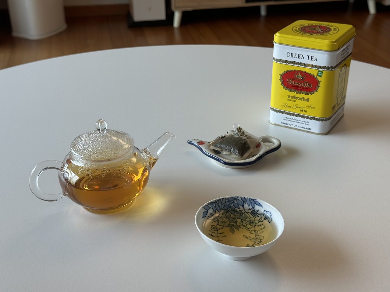 태국을 다녀왔다면 누구나 한 번쯤 봤을법한 차트라뮤. 편의상 나는 따봉차라고 부르는 차트라뮤. 태국 밀크티로도 잘 알려져 있고 일단 태국 면세점 아주 눈에 잘 띄는 곳에 자리 잡고 있어서 신나게 놀다가 뒤늦게 선물템을 하나 챙겨야 하는 면세점에서 누구나 한 번쯤은 눈길을 주게 된다. 오늘은 그중에서도 노란색 그린티. 면세점에서 140~170바트쯤인데 세 개 묶음으로 사면 거의 2+1 느낌이라 말도 안 되는 가격이긴 하다. 그린티라고 되어있지만 정확히는 녹차를 로스팅한 호지차 베이스의 자스민차.