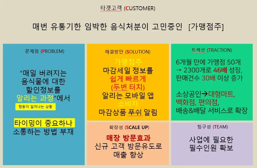 첫째, 발로 뛰면서 얻은 확신이 있었기 때문이다. 가맹점주를 고객으로 선택하면서 사장님 인터뷰 장면 등 구체적인 증거를 제시하고 있는 점을 보면 선택과정에서 실제 존재하는 고객의 상황을 얼마나 적극적으로 이해하고 있는지가 드러난다. 다른 이유는 가맹점주가 겪는 문제의 크기(Problem Size)가 이용자보다 더욱 크기 때문이다. 가맹점주 입장에서 마감 임박 상품은 매일매일 반복되고 피할 수 없는 커다란 문제이다. 반면, 이용자는 반드시 마감세일을 매일매일 구입해야 하는 절박함이 상대적으로 낮다. 문제의 크기가 크면 클수록 진입할 수 있는 기회가 크고 거부감이 적어서 수용할 수 있는 가능성이 높아진다.