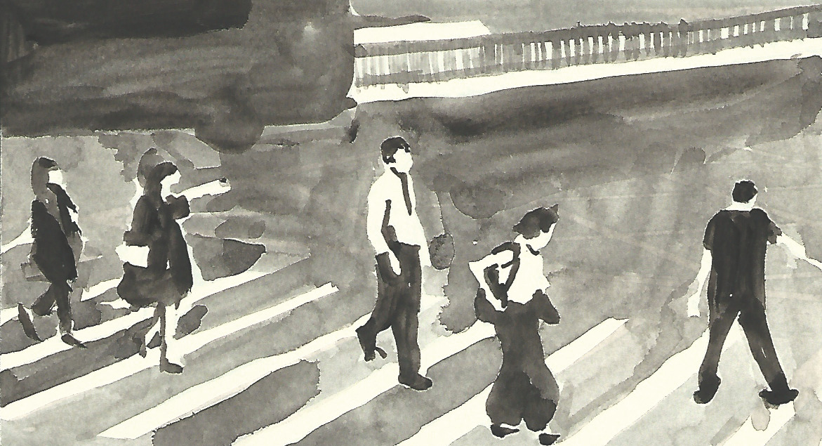 나는 옥색 유리잔을 수집했다. (영화에 꽂혀 수집했다.) 그것은 영화 '화양연화'에서 양조위와 장만옥이 식사를 하는 장면에서 나타나는데, 양조위와 장만옥, 옥색 유리잔과 접시, 식사의 배경인 레스토랑이 홍콩의 예스러움을 아름답게 잘 보여준다. 영화 세트장이라고 생각했던 그 레스토랑이 실제로 운영하는 레스토랑이라기에 찾아갔다. '골드핀치 레스토랑' 유동 인구가 있는 곳임에도 레스토랑은 조용히 숨어있었다. 지도를 보고 가지 않는다면 지나칠만하다. 문을 옆으로 밀고 들어가면 영화 속 장면이 그대로 있다. 복잡하던 홍콩의 모습과 소음이 사라졌다. 어둡고 아늑했다. 양조위와 장만옥은 어디에 앉았었냐고 물어보고 그곳에 앉고 싶었지만, (잘 다려진 흰색 와이셔츠에 검은색 베스트를 입은) 종업원의 딱딱한 표정에 참았다. 짐작 가는 자리에 앉아 메뉴판을 살펴보았다. 메뉴에는 영화 속에서 주인공들이 먹었던 음식을 세트로 주문할 수 있도록 해 두었다. ('메뉴 화양연화' 세트 같은...) 그것을 선택하진 않았다. 하루에 한 번 이틀 동안 두 번을 갔는데, 첫 방문에는 프렌치토스트와 수프, 스테이크 맥주 등을 먹었다. 개인적으로 수프가 정말... 일품이다. 잘 우려낸 사골 국물 같은 느낌을 받았다. 두 번째 방문에는 피죤... 과(정말 비둘기였다.) 스테이크 세트 등을 먹었다. 세트를 시키면 커피에 아이스크림까지 나온다. 피죤은 머리가 함께 나와서 함께 갔던 정민이와 민수가 서로에게 떠밀기 바빴다. 두 번째 방문이라고 우리를 바라보던 그 딱딱했던 종업원의 표정이 온화해졌다. 오늘도 아사히를 마시겠냐며 아는 척까지 해줬다. 그림 속의 여성은 그 종업원이다. 멋진 곳에서 일한다는 자부심이 있을 것이다. 맥주를 컵에 따라주는 동작에도 기품이 있다. 숙련된 우아함 같은 것. 이 숙련된 우아함은 종업원뿐만 아니라 가게 곳곳에 묻어있다. 그 숙련됨이 머무는 사람에게 편안함까지 선사한다. 식사를 끝내고, 영화를 통해 멋져진 곳이 아니라 원래 멋진 곳을 영화가 찾아왔으리라 짐작해 봤다.