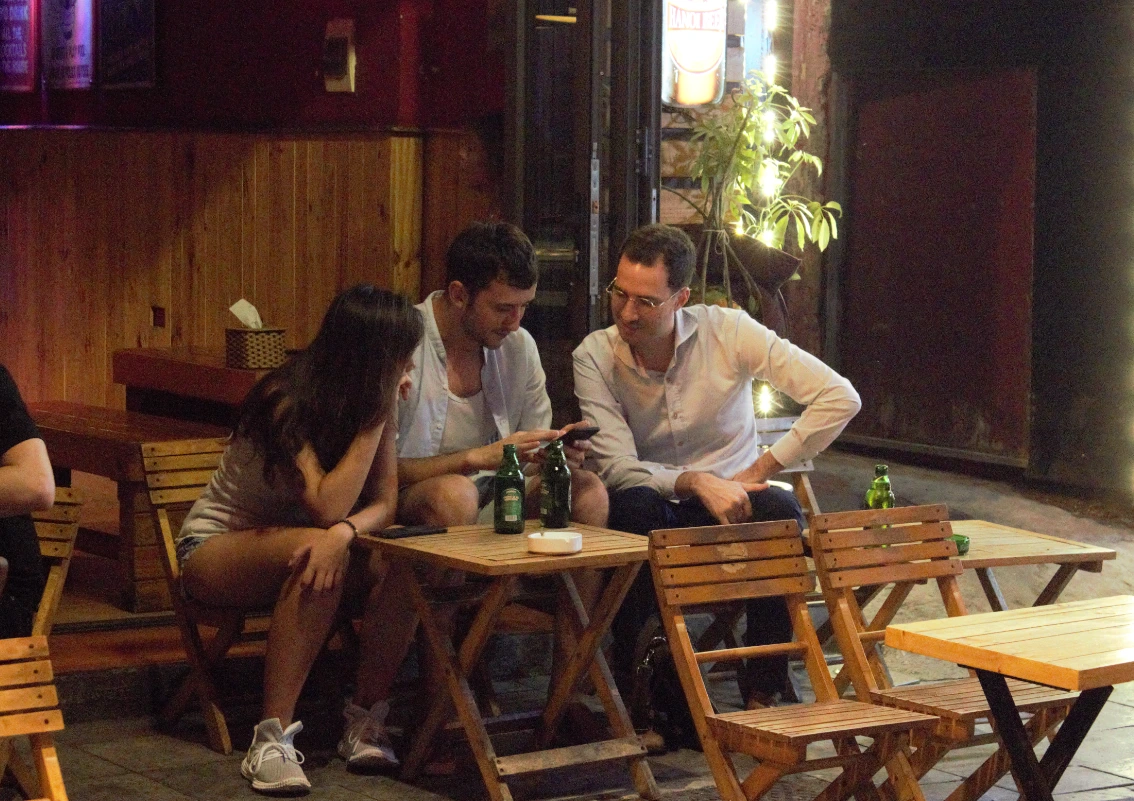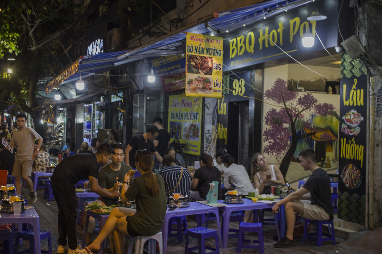 토요일 밤, 하노이에 위치한 맥주거리는 나라별로 가장 에너지가 넘치는 사람들을 선별해서 모아놓은 게 아닐까 느껴질 만큼 활기가 넘쳐. 거리에 울려 퍼지는 시끄러운 음악 덕분에 정말 공기마저 시끄러운 느낌이야.