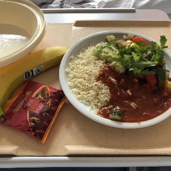 나는 빵을 주지 말라고 매일같이 말하는데 한두 번 안 나오다가는 또 빵이 나온다. 빵 대신 건조한 비스킷 같은 게 나오기도 한다. 나한텐 그게 그거고 비스킷은 심지어 플라스틱 포장이고 너무 건조하고 딱딱해서 손도 안 대는데도 자꾸 준다. 거기에 발라먹으라고 스프레드랑 마가린, 잼도 자꾸 준다. 차라리 과일이나 샐러드를 줬으면 좋겠는데...