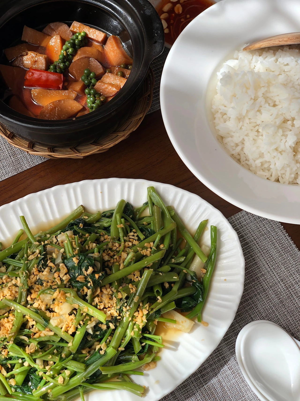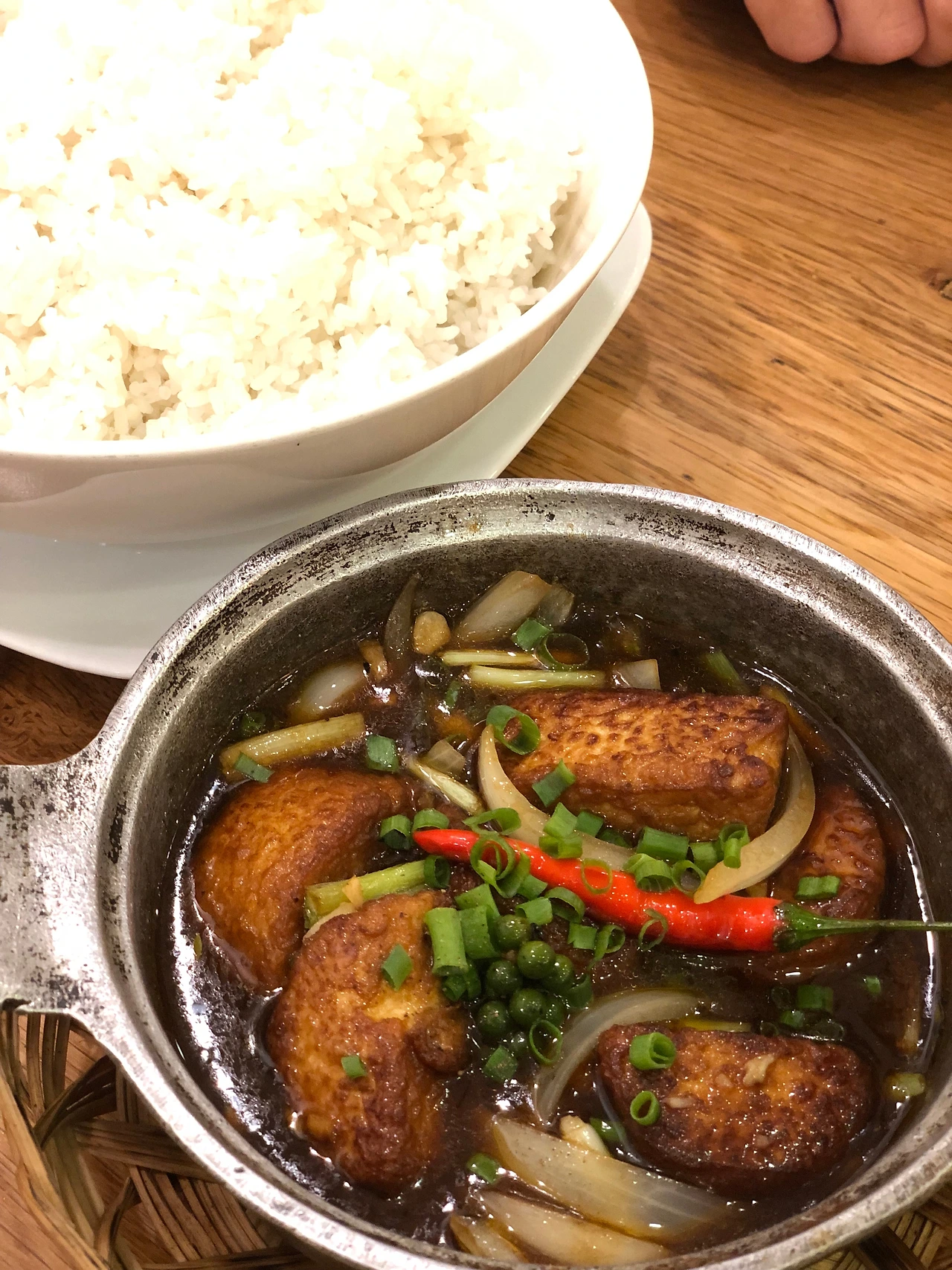 튀긴 순두부를 짭조름한 소스에 조린 두부후추간장 요리가 맛있다. 소스가 특히 맛있어서 갈 때마다 먹었다. 마늘 공심채 볶음을 시키면 튀긴 통마늘이 들어있다. 밥 큰 대접, 요리 세 가지 주문해서 먹었다. 주문한 모든 음식이 다 맛있었다.