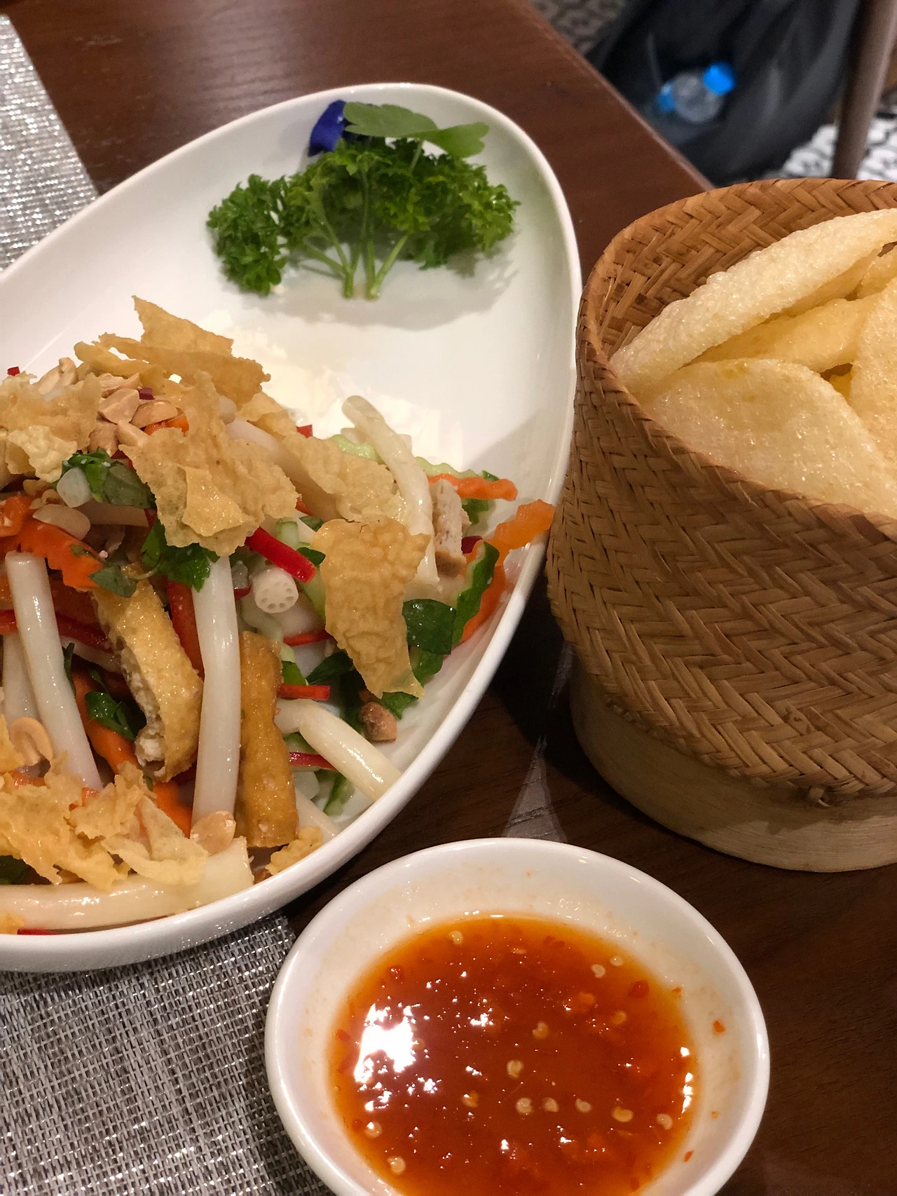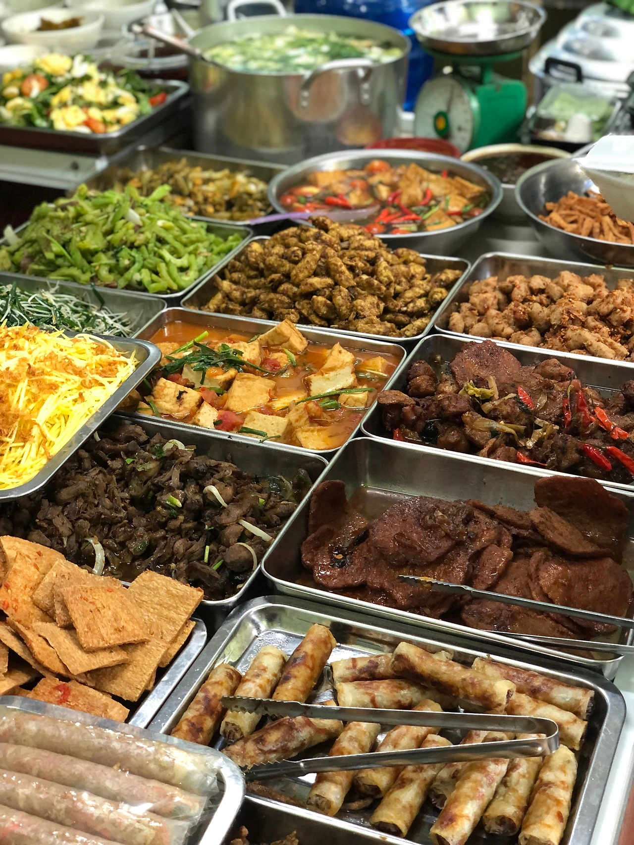 숙소와 야시장 사이에 작은 비건 식당이 있는데 들어가면 소소하게 준비된 몇 가지 음식과 밥 혹은 국수를 먹을 수 있다. 가격은 저렴하고 세상에 비건 피시소스로 직접 담은 꽤 괜찮은 비건 김치가 있었다. 아쉽게도 음식 맛은 그저 그래서 한번 가고 말았다. 숙소에서 가장 가까운 비건 뷔페는 아쉽게도 우리가 갔을 때 임시휴업 중이었다.