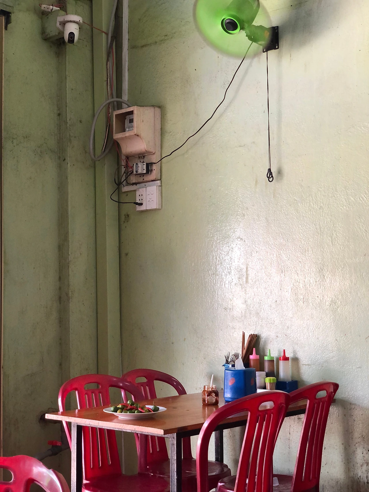 식당은 오래된 건물이지만 천장이 높아 답답하지 않다. 대부분 동네 사람들이 오는 듯하다. 한 번은 바쁜 시간대에 갔더니 가게 앞에 오토바이가 빽빽하게 있었고 식당 안에도 사람들로 바글바글했다. 대부분 밥이랑 반찬을 포장해가지만 앉아서 식사하는 사람들도 많아 자리가 없었다. 그 장면을 밖에서 구경하면서 기다리다가 한숨 여유가 생겼을 때 들어갔다.