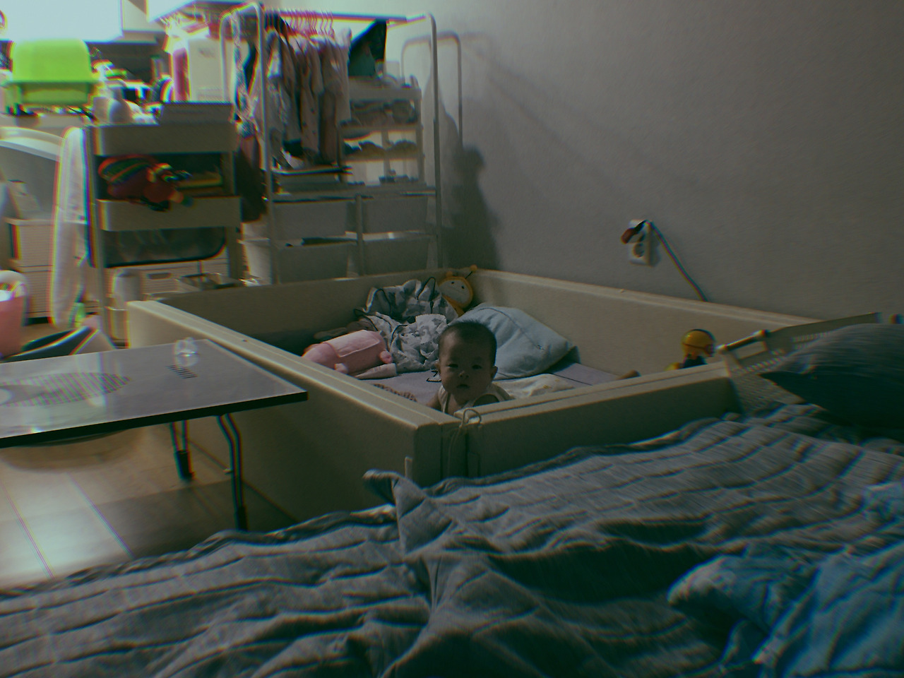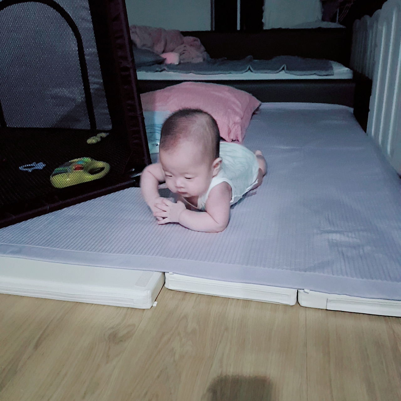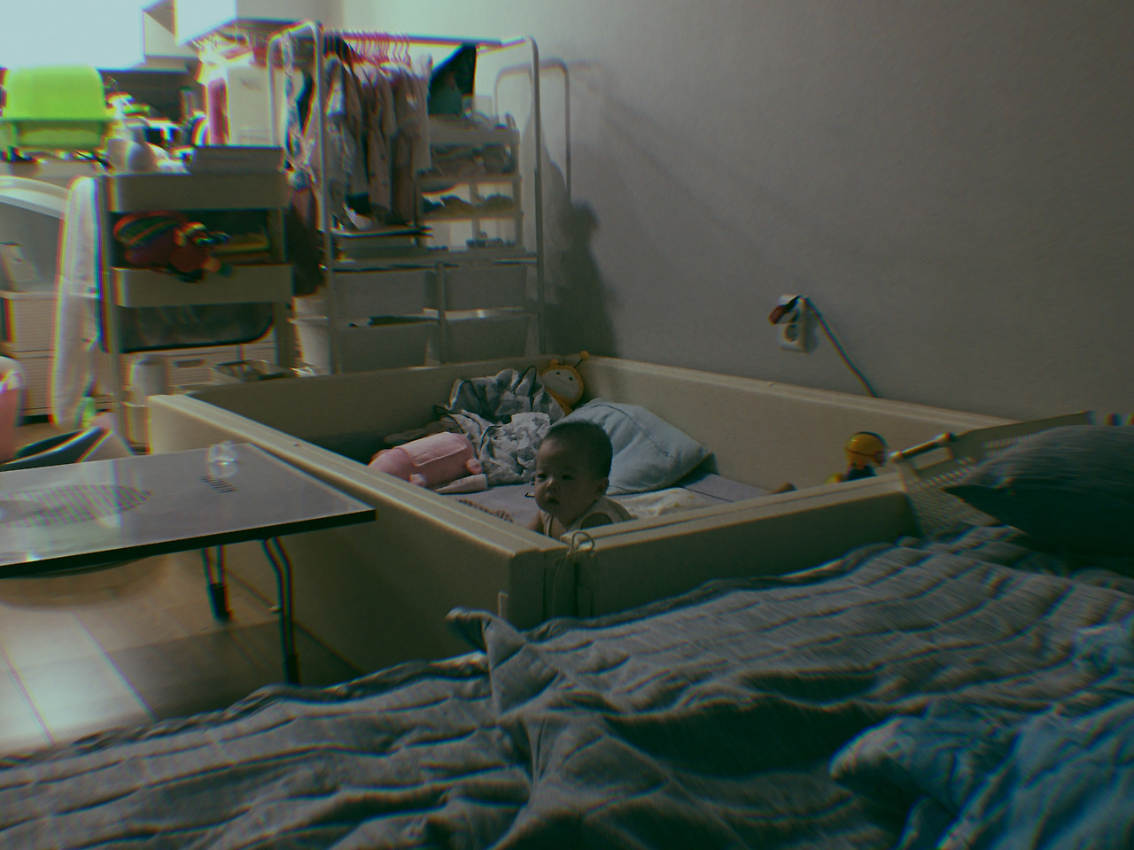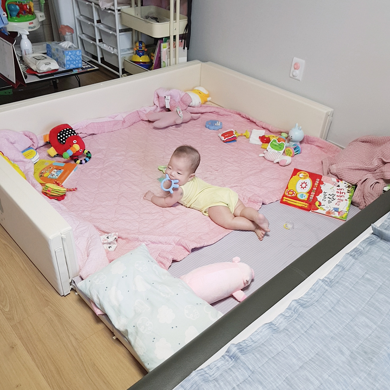 수납공간이 부족해서 힘들긴 했지만, 아기가 원목 침대를 벗어날 일이 크게 없었기에 생활에도 큰 지장이 없었다. 적어도 아기가 뒤집기를 시작하기 전까지는.