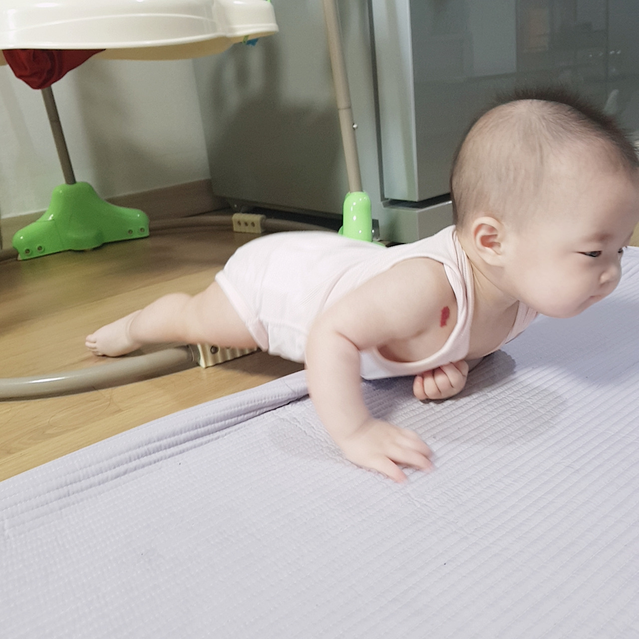 사실 모든 아이들이 다 그렇지만, 우리 아이는 특히나 호기심이 강했다. 한 달이나 일찍 태어났음에도 거의 백일만에 뒤집기를 성공했고 대근육 발달 속도가 엄청 빨랐다.