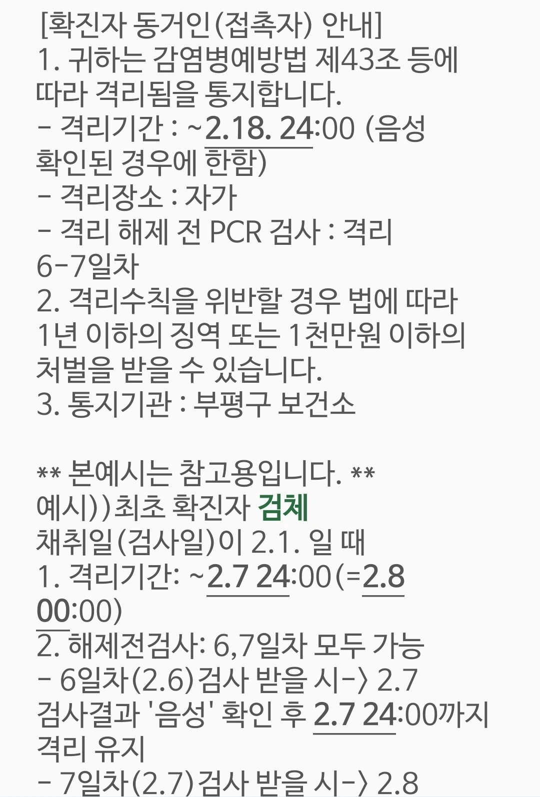 토요일에 격리 시작이었는데, 이 문자를 월요일에 받았다. 얼마나 일이 밀렸으면... 그저 이 상황이 안타까울 뿐