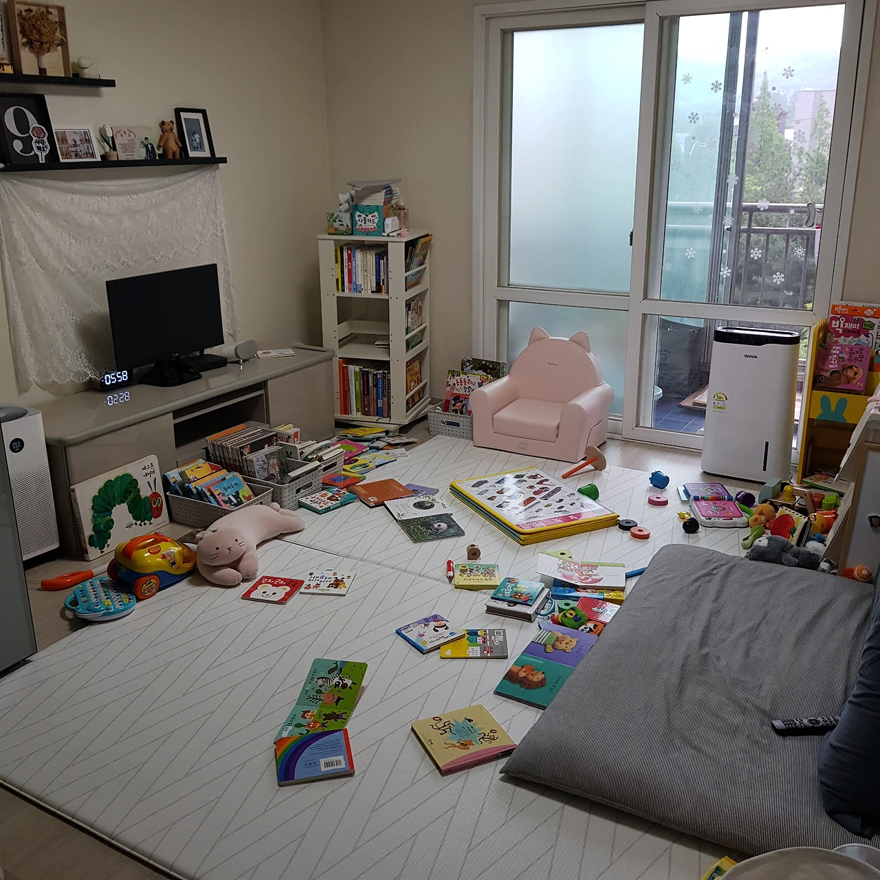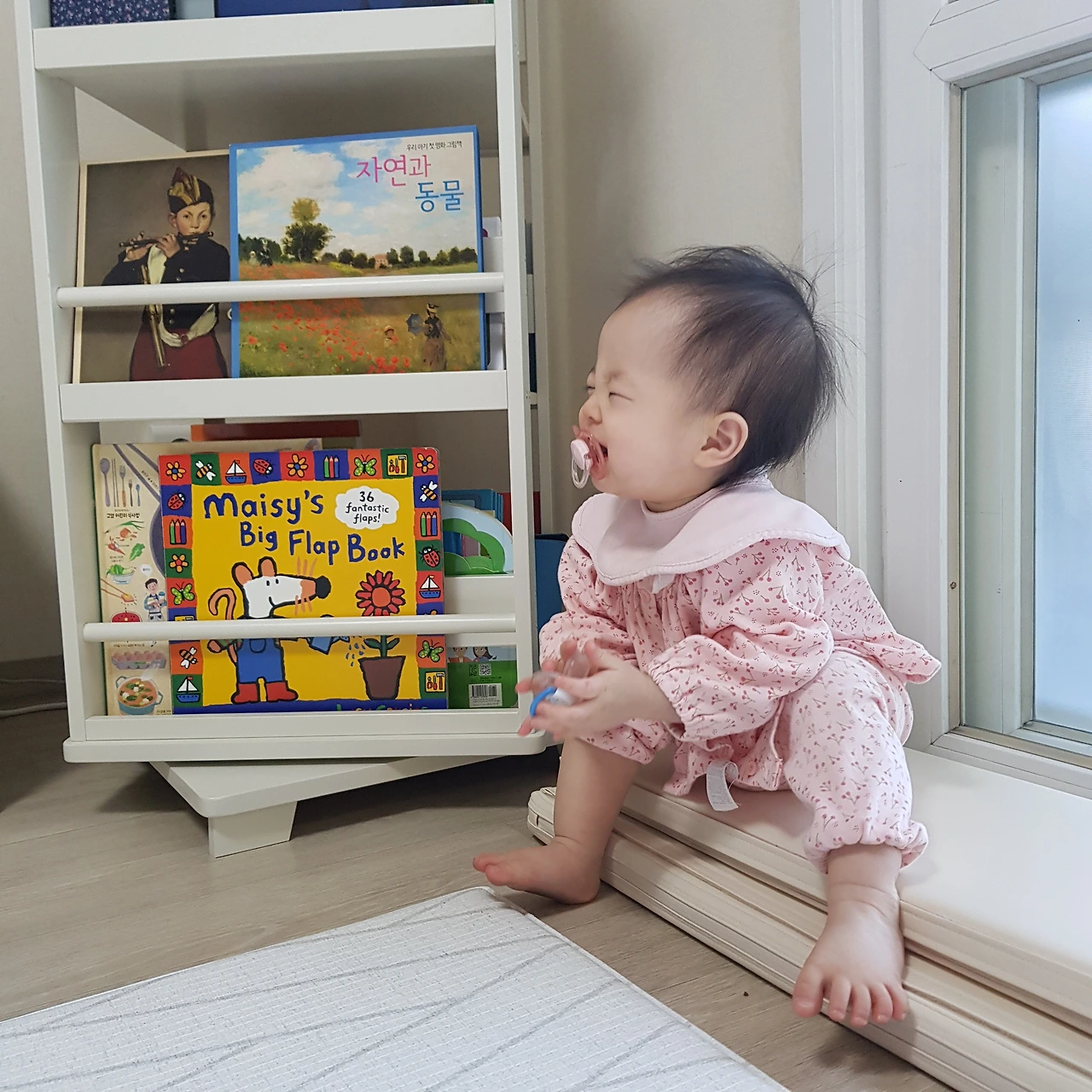책육아의 단점: (책값이 든다는 점을 제외하고) 책 육아의 단점이 있을까? 온 집안을 굴러다니는 책들과의 전쟁을 해야 한다는 점이다. 특히 아이가 스스로 정리를 하지 못하는 나이라면 더더욱... 눈에 보이는 빈칸에 꽂아 넣어보기도 했는데, 아이가 찾는 책이 그 자리에 없어서 엄마한테 찾아달라고 하는 부작용(?)이 생겼다.