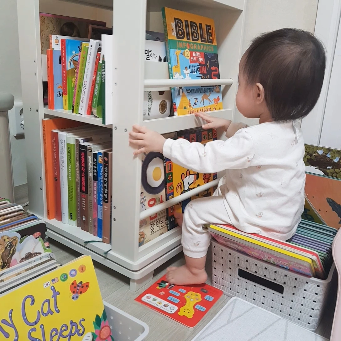 지금 우리 집에는 회전 책장만 세 개가 있는데, 아이는 세돌이 지난 지금까지도 고정된 책장보다 회전 책장을 훨씬 좋아한다(뭔가 움직이는 걸 좋아하는 아이의 성향에 잘 맞기도 했다).