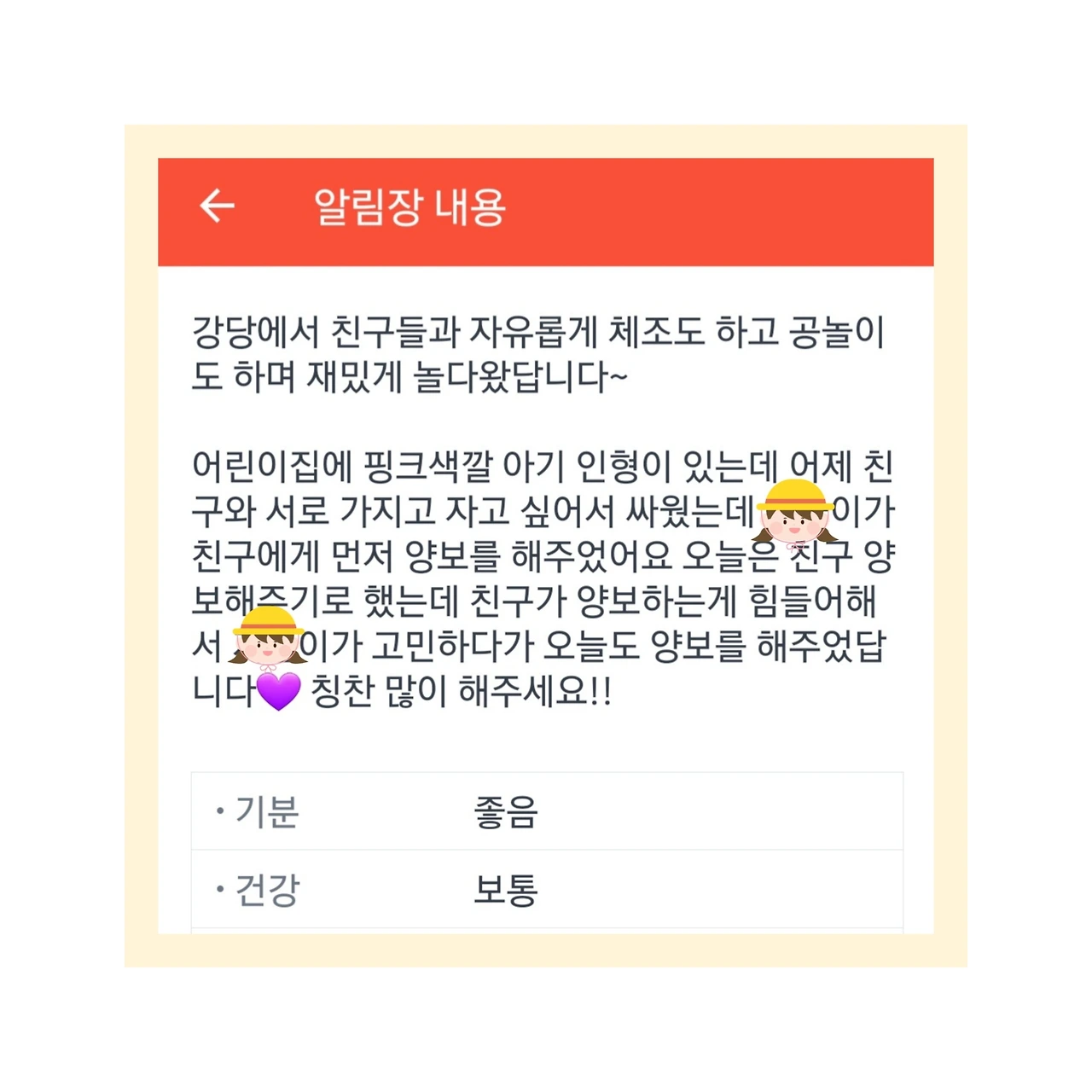 키즈노트 알림장 내용을 보고 눈을 비볐다. 우리 아이가 이틀 연속으로 친구에게 양보를 했다니?