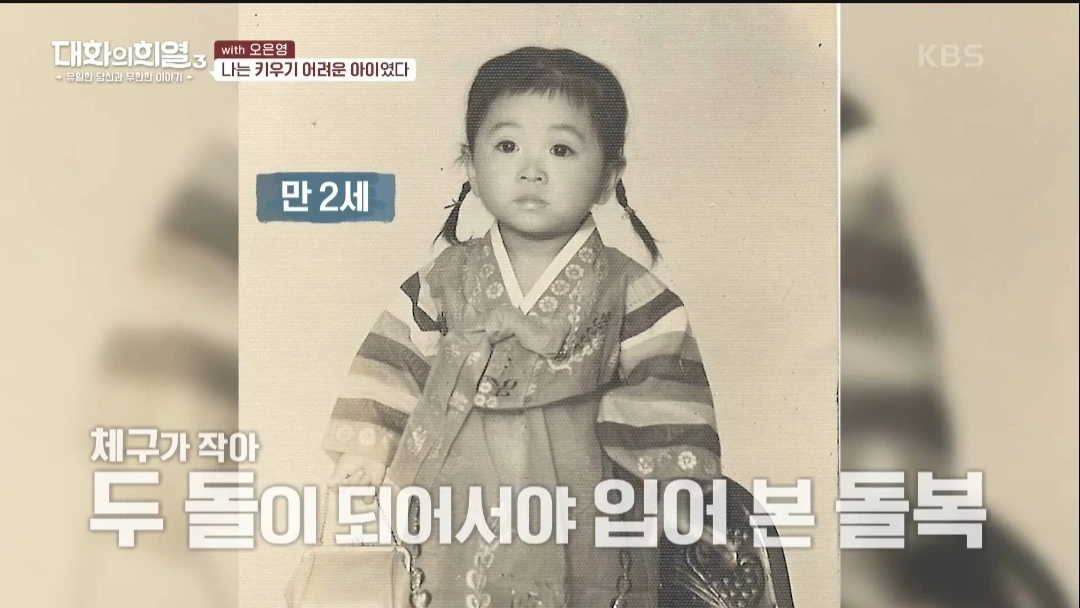 두 돌이 다 되어서야 돌쟁이 한복을 입고 사진을 찍었을 정도로 체구가 작았고, 소고기도 대학교에 가면서 먹었을 정도로 편식이 심했다고 한다. 온 국민의 '육아 멘토'로 활약하는 지금의 그녀를 보면 쉬이 믿기지 않는 과거이다.