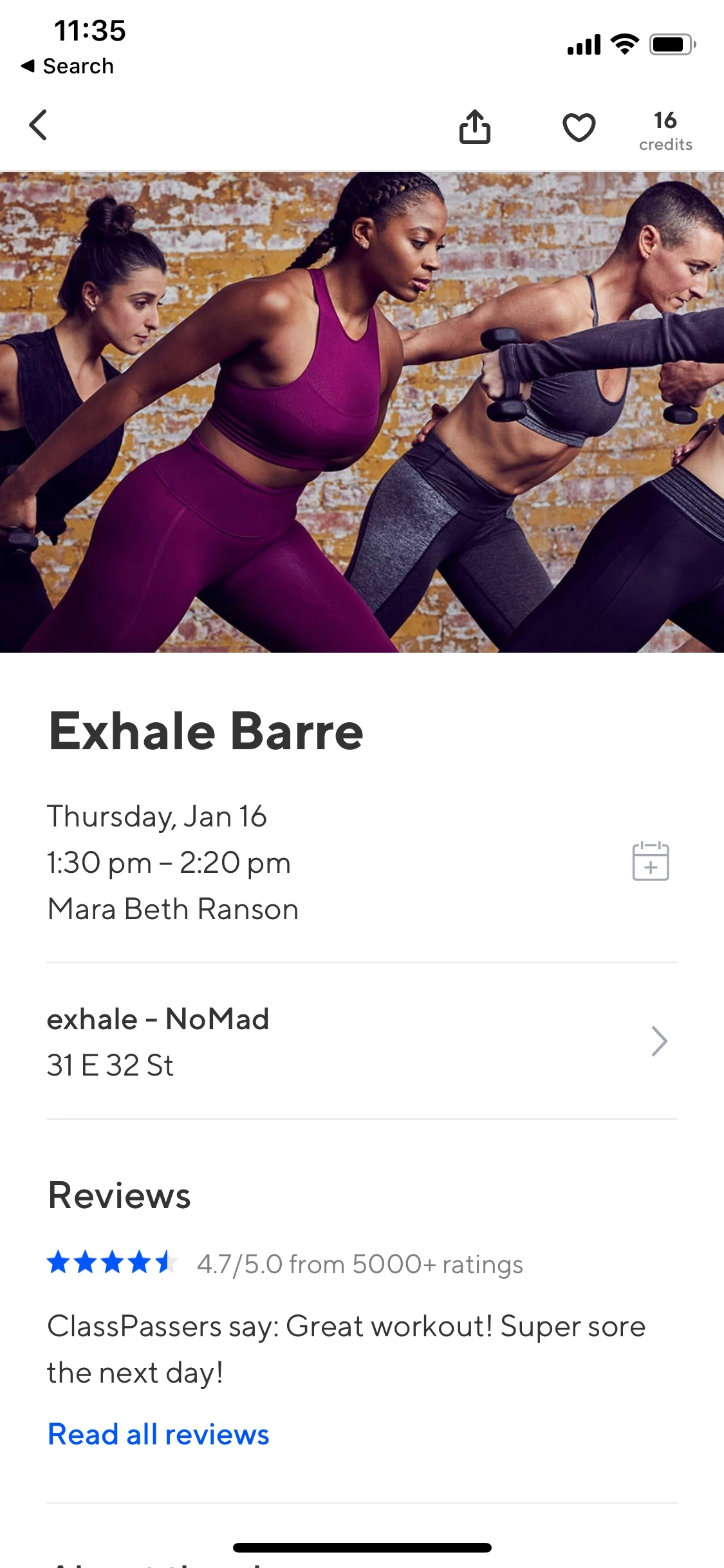 Class Pass에 대해서는 다른 글에서 더 구체적으로 설명하겠지만, 우선 가입부터 첫 클래스 예약 및 참여까지 아주 부드럽게 이어졌다. 아래의 Exhale Nomad 지점의 Barre 클래스는 나의 첫 도전.