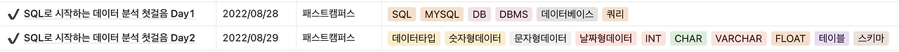 [패스트캠퍼스] 국비로 데이터 분석 강의(SQL) 공부하는 학습일지 W1