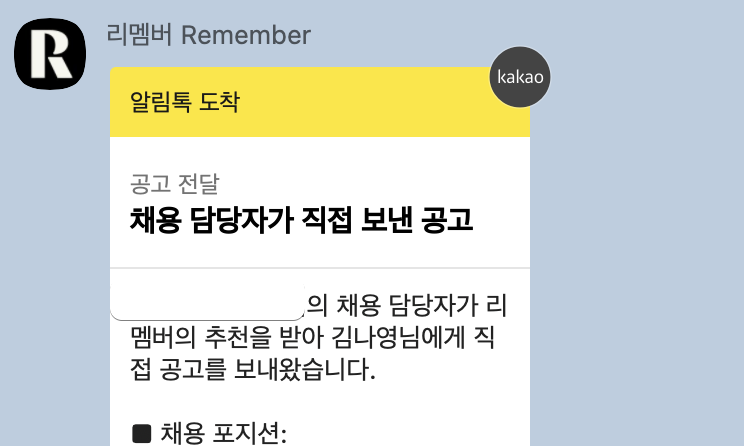 어이없게도 해당 회사 인사 담당자가 나에게 다른 직무의 공고를 보냈다는 알림이 온 것이다.