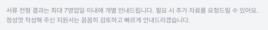채용 사이트 상에서는 '영업일 기준 7일 내에 개별 안내를 드린다'고 기재되어 있었다.