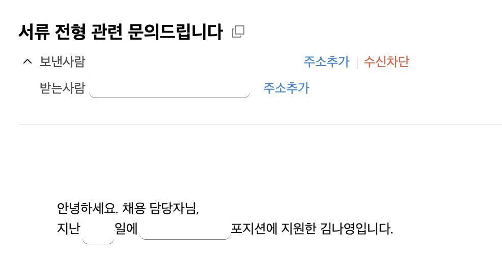 웬만하면 기업의 답변을 기다리는 편이었지만, 결국 나는 수요일 오후, 확인차 메일을 보내게 되었다.