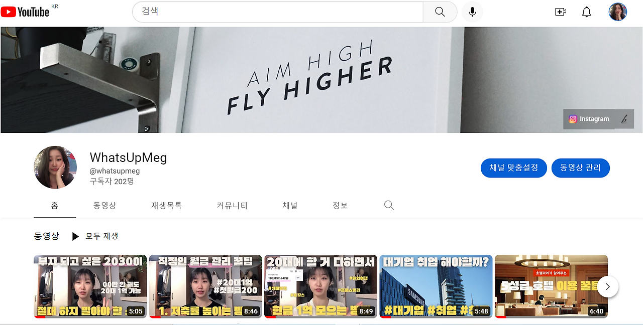 현재(2022.12.31 기준) 유튜브에는 총 17개의 영상이 올라가 있으며 구독자는 202명이다. 초기 유튜브 주제는 해외취업, 이직과 관련된 이야기였지만 현재는 재테크 관련된 콘텐츠를 주력으로 하고 있다. 한동안 채널 성장이 너무 느려서 클래스 101에서 유튜브 관련 강의를 수강했는데 초반에는 노출이 높은 상위 주제를 가져가는 것이 유리하다는 이야기를 듣고 방향을 새로 잡고 있다. 뿐만 아니라 최근에는 새로운 미디어 폼으로 쇼츠가 뜨고 있기 때문에 앞으로는 이 부분도 활용해볼 예정이다.