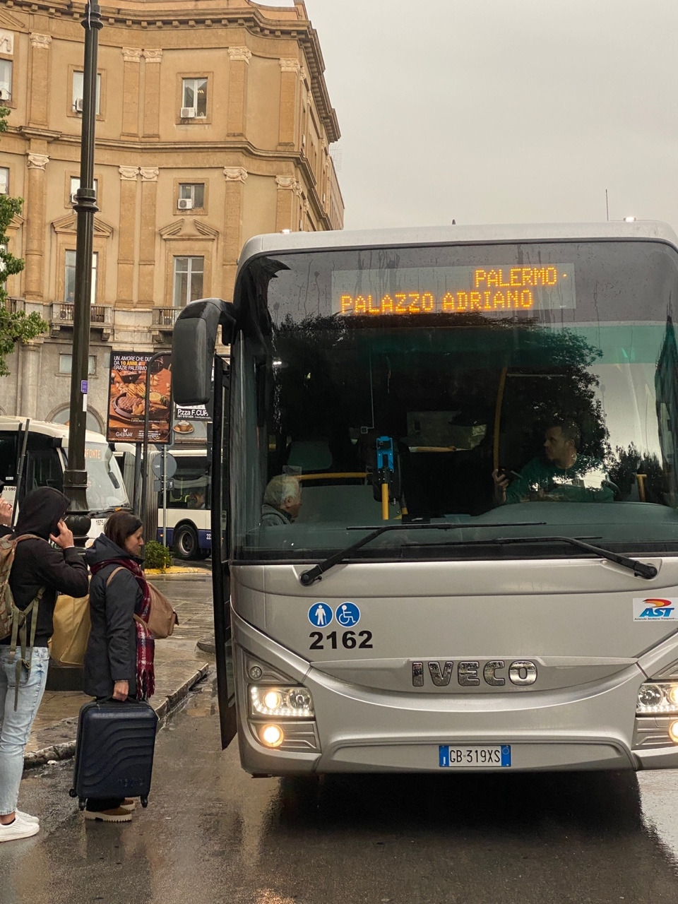 구원은 바라는 것이 아니라 스스로 행하는 것이라 했던가. 터미널의 끝과 끝을 끝없이 왕복하는 고행 끝에 나는 정류장을 알현하고 가까스로 팔라초 아드리아노(Palazzo Adriano) 행 버스를 탈 수 있었다. 비 때문이었는지 버스가 늦어진 게 오히려 다행이었다. 정류장을 찾는 과정에서 ‘gdfsh’님의 블로그가 많은 도움을 주었는데, 이 자리를 빌려 그에게 감사를 표한다.