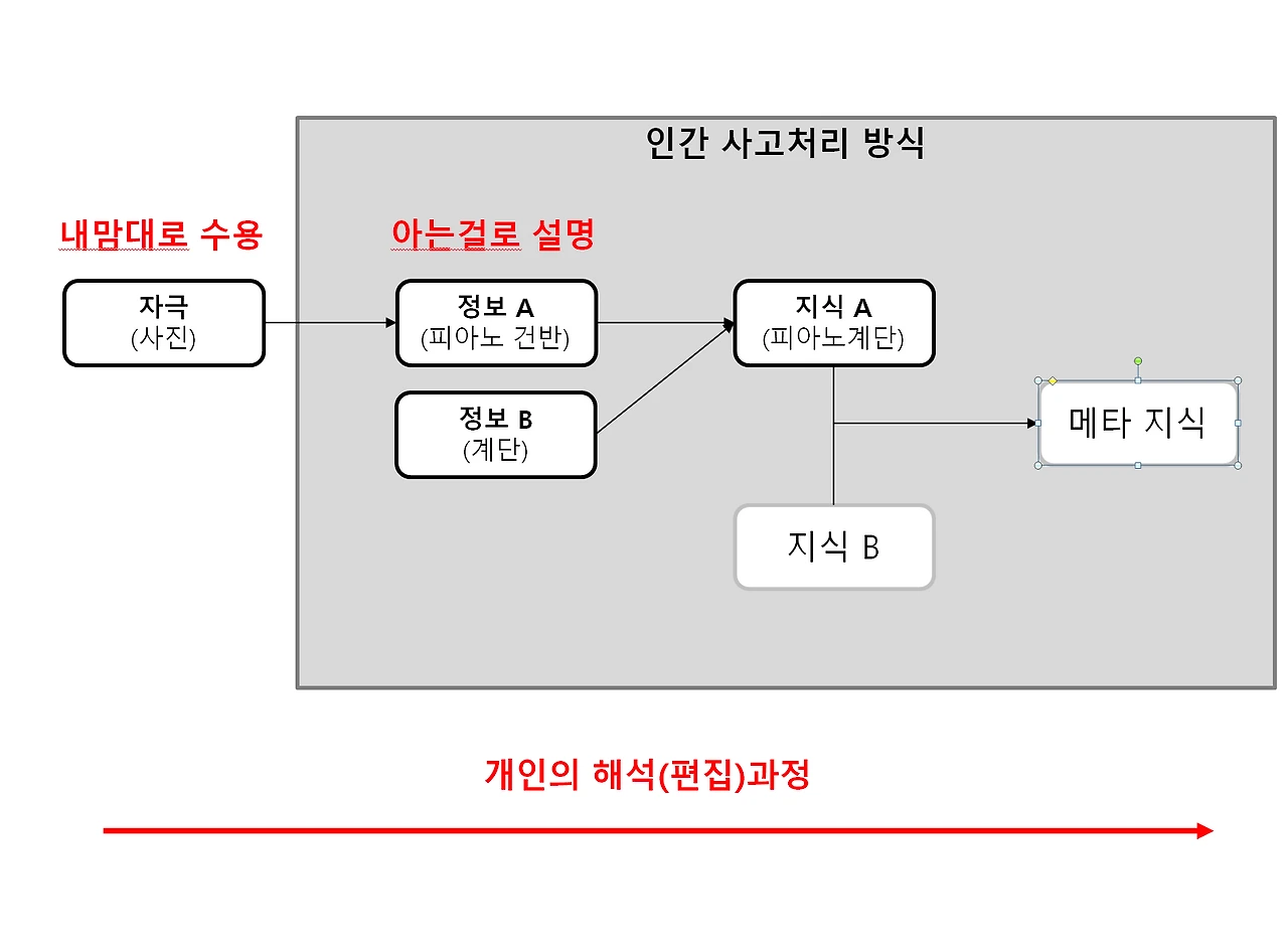 인간은 자극을 선택적으로 받아들이며, 그렇게 선택된 자극(정보)조차 내가 아는 것들과 관련하여 처리한다. 이런 정보들을 또다시 연결 지어 지식이 만들어진다. 결국 자극으로부터 지식이 만들어지까지 일련의 과정이 어떤 객관적이고 통일된 과정이라기보단, 사람들 개개인이 갖고 있는 맥락에 기초한 지극히 개인적인 과정으로 볼 수 있다.