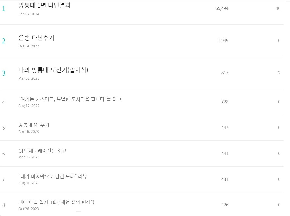 그리고 그렇게 1년9개월 이라는 시간이 지났다. 이쯤 되면 그동안 내가 해온 글쓰기에 대한 성과를 알고 싶기도 하다.
