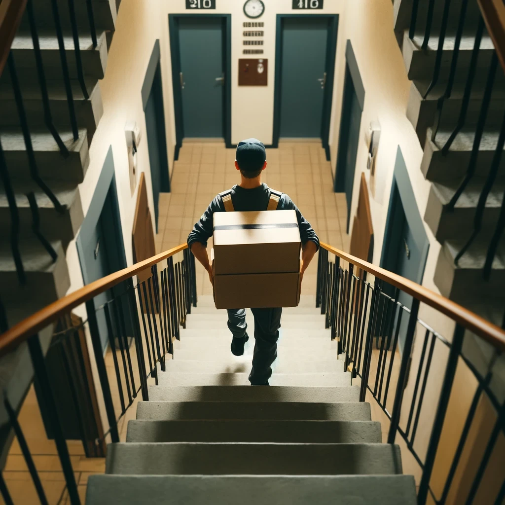 이외에도 계단이 없는 아파트 일대를 배송할 때는 다수의 일괄 문자 전송을 하여 경비실이나 우체통에 보관하겠다고 일방적으로 통보하는 경우도 있다. 고객은 납득할 수 없는 일이지만, 기사의 입장에서 계단이 없는 5, 6층의 아파트를 배송해야 하는 입장에서는 어느 정도 이해가 가는 일이기도 하다.