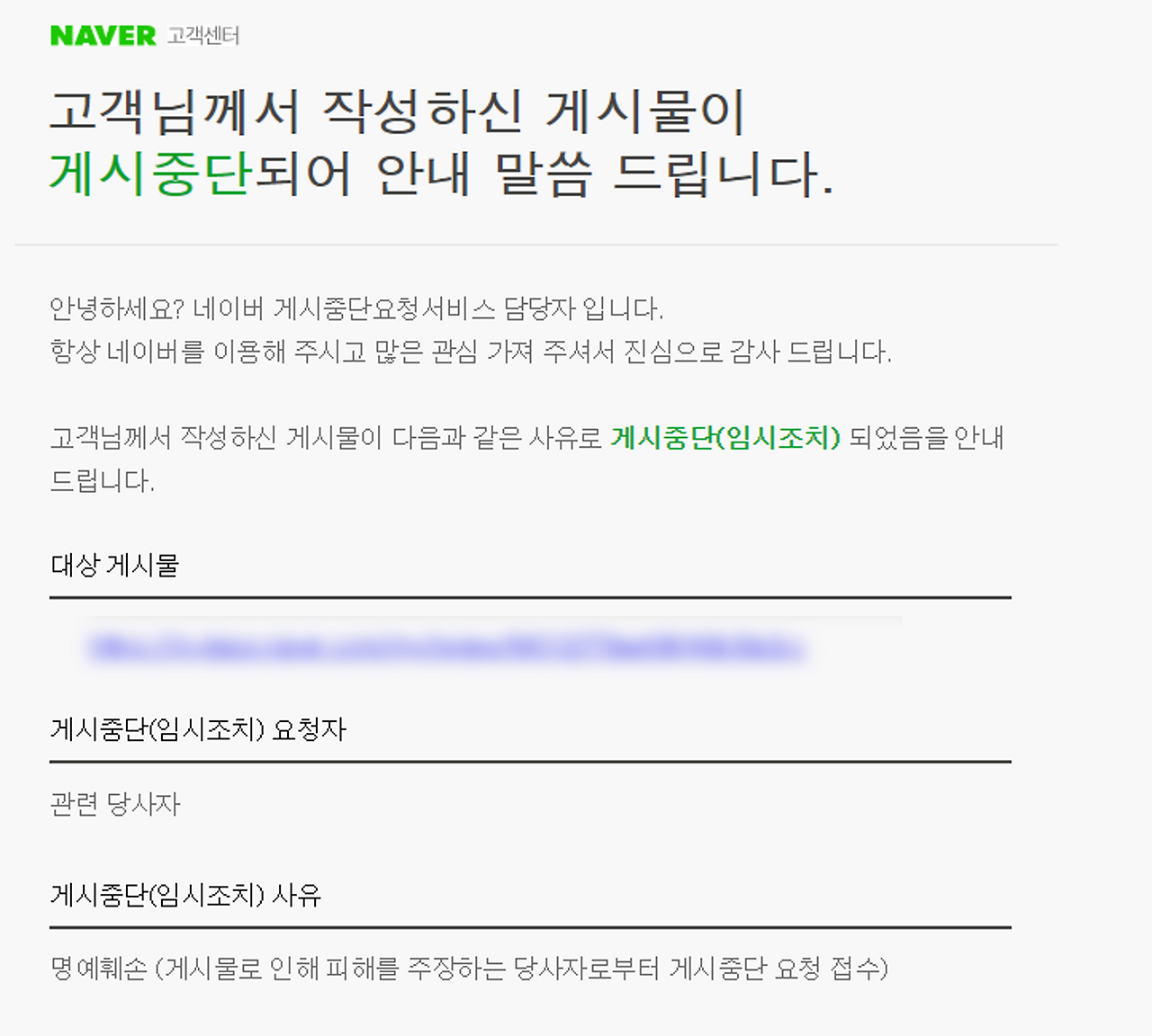 네이버 리뷰 게시중단 메일