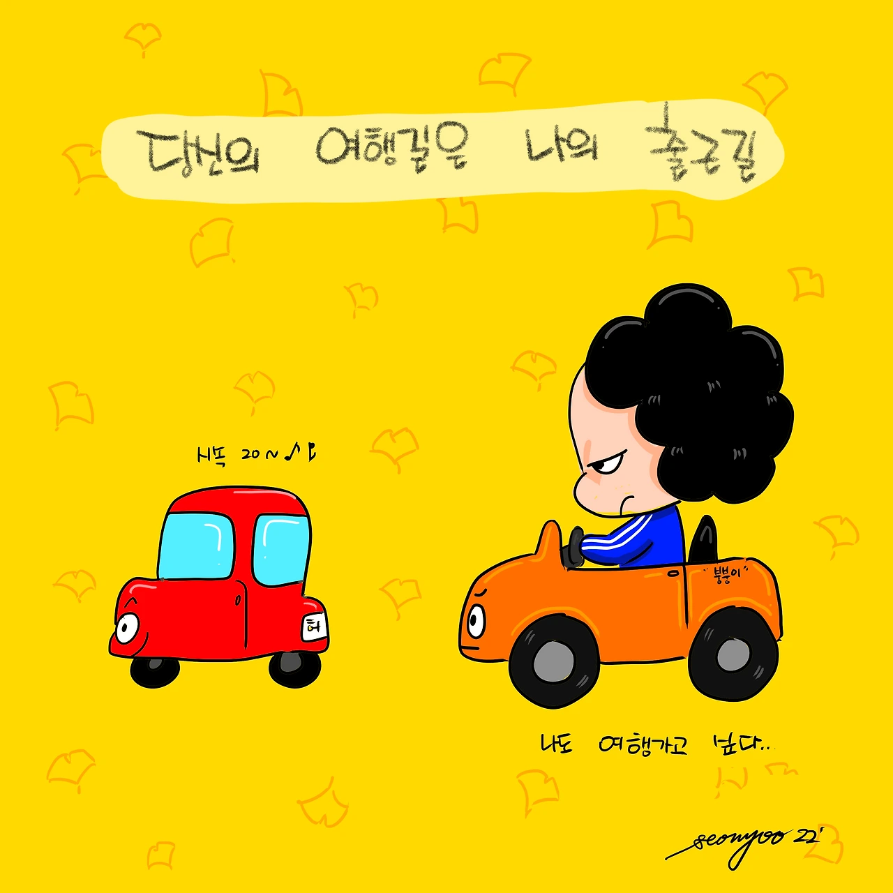 전국구 관광도시의 위엄 답게 평일 아침에도 관광객들로 가득찬 시내. 왠만하면 주말엔 그쪽길을 피해보지만 출근을 해야하는 경우는 어쩔 수 없다. 그러다 시속 20키로 미만으로 달리는 관광객 차들을 만나면 조급한 맘에 부글부글 하면서도 한편 부러운 마음이 든다. 여행지에 살면 매일이 여행 이어야 하는데…그런 이상적인 마음가짐이 들면 세상 사는게 얼마나 편할까. 그러나 결단코 나는 아니다. 그저 오늘은 시속 20을 만나지 않기를 바랄뿐. 당신의 여행길, 나의 출근길.