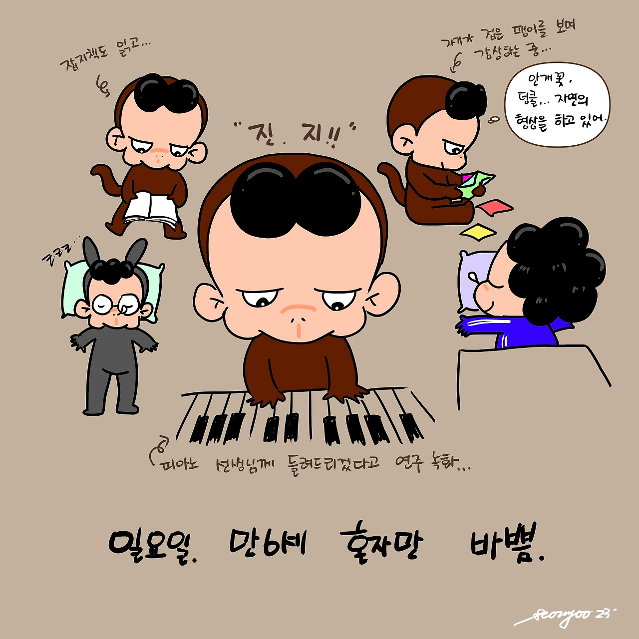 일요일 아침. 가장 먼저 일어난 만6세. 종이접기, 피아노 치기, 독서… 바쁘다. 빵득아범은 빵득이랑 아침 먹고 세탁기를 돌리더니 코고는 중. 빵득맘은 늦게 일어나 아직도 비몽사몽. 빵득이가 피아노 선생님께 ‘베토벤 바이러스’ 연주한 걸 보여 드리고 싶다며 영상 녹화를 도와달래서 도와줌. 중간중간 자기가 접은 종기접기 결과물을 가져와 감상 시간도 가진다. 팽이 하나를 가져와서는 자연의 형상을 띄고 있다며 설명하는데 아무리 봐도… 모르겠다. 쉴 생각은 전혀 없어보이는 만6세. 젊은이는 역시 체력이 다르다.