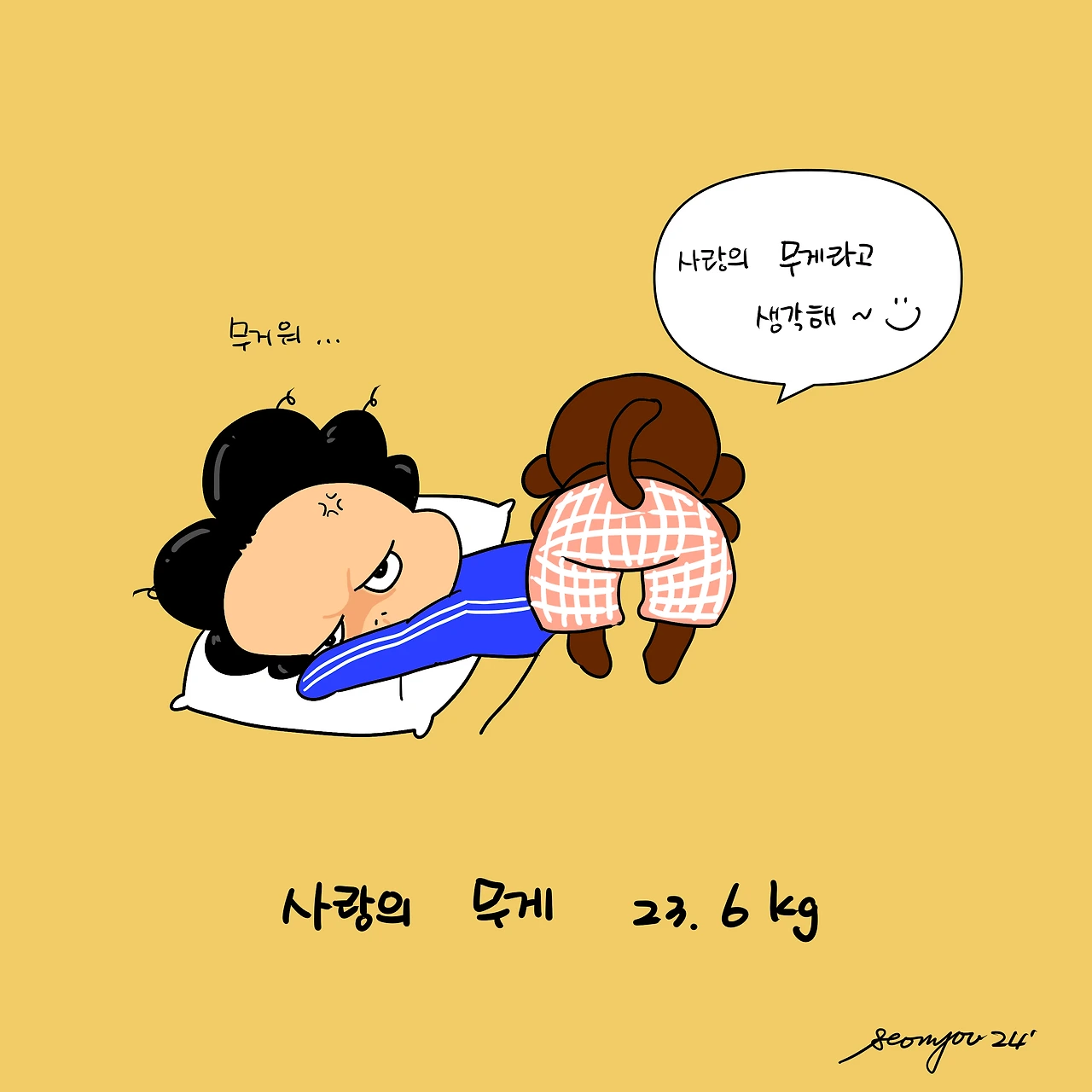 신문사에 보낼 원고를 작성하기전 머리를 맑게 한다는 핑계로 낮잠을 자려고 누웠다. 곧이어 빵득이의 공격이 이어졌다. 무겁다고 했다. 그랬더니 사랑의 무게라고 생각하란다. 그럼 엄마 사랑의 무게도 느껴보겠니?