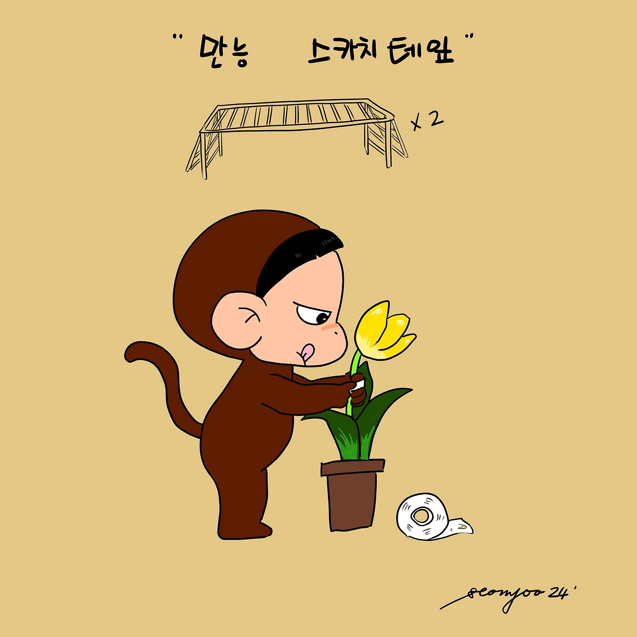 조용할 땐 항상 긴장해야한다. 잠시 조용하길래 쳐다보니 스카치테잎을 들고 튤립 화분 꽃줄기를 감싸고 있다. 사고쳤구나. 튤립이 고개를 한쪽으로만 기울이고 있길래 바로 세워주려고 했단다. 그러다 꽃줄기가 부러져서 테잎으로 붙여줬다고. 테잎이 만능인줄 아는 어린이. 빨래건조대 두 대도 이렇게 만들어놔서 집에 멀쩡한 빨래 건조대가 없다. 그래도 오늘은 딱풀은 등장하지 않았다. 아이패드를 끼고 있으니 눈치채고 일기 쓰지말라고 했지만 그냥 쓴다.