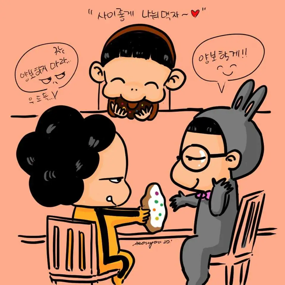 어린이집에서 도넛 만들기를 한 빵득어린이. 두 개를 포장해 와서 엄마아빠랑 꼭 나눠 먹어야한다고 했다. 그래서… 엄마와 아빠는 서로에게 아주많이 양보하면서 그 도넛을 나눠먹었다…