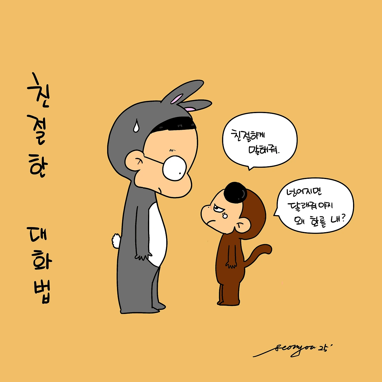 친절하게 말해줘! 어지럽힌 바닥을 정리하라는 아빠의 지적에 눈물을 글썽이며 빵득이가 말했다. 본인이 잘못을 하더라도 큰소리나 화를 내지말고 친절하게 말해달라고 했다. 이건 도인이 되라는 소리같은데… 대략 5년 전쯤 자신에게 화를 내거나 단호하게 말하지말라던 때가 기억났다. 그 땐 우느라 말로 못하고 글자로 써내려 갔었다. 아기때라 웃고 넘겼지만 이번엔 달랐다. 나름 생각을 한 빵득아범은 그날 이후 올 해 목표로 아들에게 친절하게 말하기를 추가했다. 그리고 지금껏 시시때때로 목소리가 조금이라도 커지거나 딱딱해지려고 하면 ‘친절하게 말해줄래?’ 멘트가 튀어나온다. 이건 빵득이만 해당되지 않고 가족 모두가 서로 말해주고 있다. 물론 하루 아침에 잘못에 대해 화를 내지 않기란 쉽지 않다보니 무심결에 언성이 높아지기도 하는데 친절하게란 말이 나오면 더이상 이어지지 않는다. 화를 내다가도 피식웃고 넘어가는 일이 잦아들었다. 그 덕인지 조금 더 평화로워진 느낌이다. 그런데 아이러니하게도 정작 어린이 본인은 친절하게 대답하지 않는다. 지금도 삐져서 엉덩이를 치받아올리고 엎드려 있다.