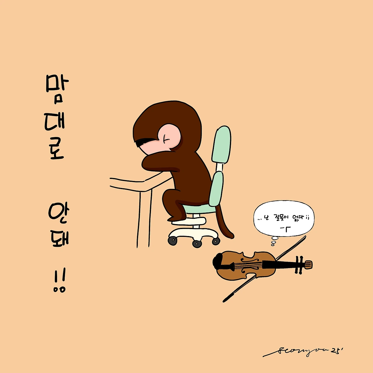 바이올린 연습하다 눈물 콧물 짜는 어린이. 지난번 학원에서 지적받은 부분이 계속 잘 안된다며 난리다. 세상사 모든게 맘대로 되면 얼마나 좋겠냐만. 저럴때마다 달래도 보고 혼도 내봤지만 매번 도돌이표다. 저 승질머리는 도대체 누굴 닮은건가. 육아는 나날이 더 어렵다.
