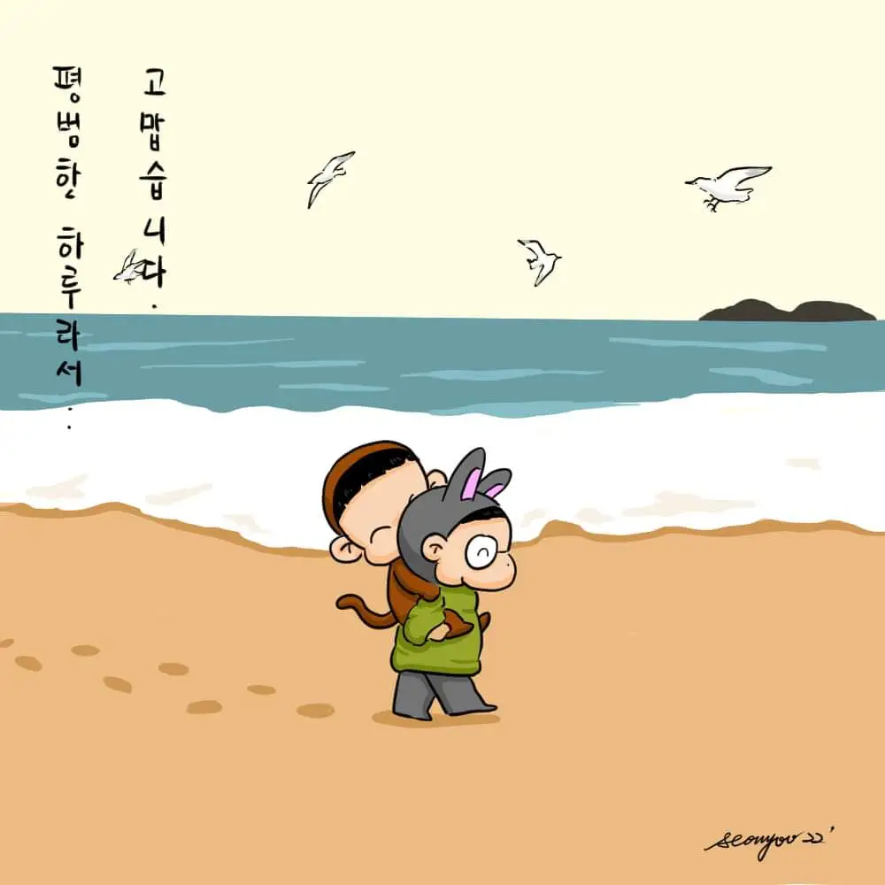 바닷가에서 함께 산책을 하고 서점에 들러 7세 어린이가 고른 종이접기 책을 샀다. 그리고 남편이 나에게 겉옷을 선물해주기 위해 나선 시내에서 빵득이와 내 장갑을 새로 샀다. 최대한 닮은 무늬를 찾아 골랐다. 그리고 집에 돌아와서 김치볶음밥으로 저녁을 먹은 뒤 함께 주말 드라마를 봤다. 평범하다는건 많은 노력을 필요로 한다. 왜냐하면 매우 많은 조건을 갖추어야 하기때문이다. 어느날 조금 철이 들었을때부터 평범함은 내 삶의 목표가 됐다. 그래서 평범한 오늘 하루가 참 고맙다.