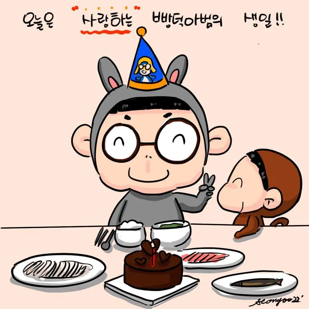 오늘은 “사랑하는” 빵득아범의 생일. 수동적 자가격리 상태라 외출은 가능하지만 혹시나 모를 경우를 대비해 마스크를 낀채 자가격리중인 빵득맘. 세상이 좋아지긴 했다. 원래 계획과는 많이 달라졌지만 집 밖을 나가지 않고도 케익이며 빵득아범이 좋아하는 회세트까지! 생일상은 무사히 차려졌다. 그래도 미역국은 전날 마트에서 배달시킨 미역으로 직접 끓였다. 내년 생일은 시원한 공기 마시며 바깥 외식이 가능해지길 바라본다. (부가설명: 평소 친구처럼 자주 장난을 치는데 빵득아범의 농간으로 빵득이가 오해를 하는 상황이 발생했다. 아빠는 엄마를 사랑하는데 엄마는 아빠를 사랑하지 않는게 이상하단다. 그래서 아들의 정서교육 차원에서 그날 이후 “사랑하는”이란 미사여구를 꼭 붙이고 있다. )