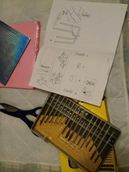 때문에 오늘은 꼭 필요한 것만 사기로 굳게 마음먹었다. 함께 간 이가 없어도 씩씩하게 장바구니에 물건을 담을 때마다 뿌듯하기도 하고, 내 살림으로 꾸릴 생각에 신나기도 했다. 반나절 쇼핑 끝에 집으로 돌아와 사 온 물건들을 하나씩 꺼내서 필요한 곳에 놓아두고, 화장대 의자를 꺼냈다. 그런데, 또 한 번의 시련이 있었으니. 간단히 손으로 만들 수 있어 보였던 의자는 드라이버와 공구들이 꼭 필요한 조립식 의자였다.