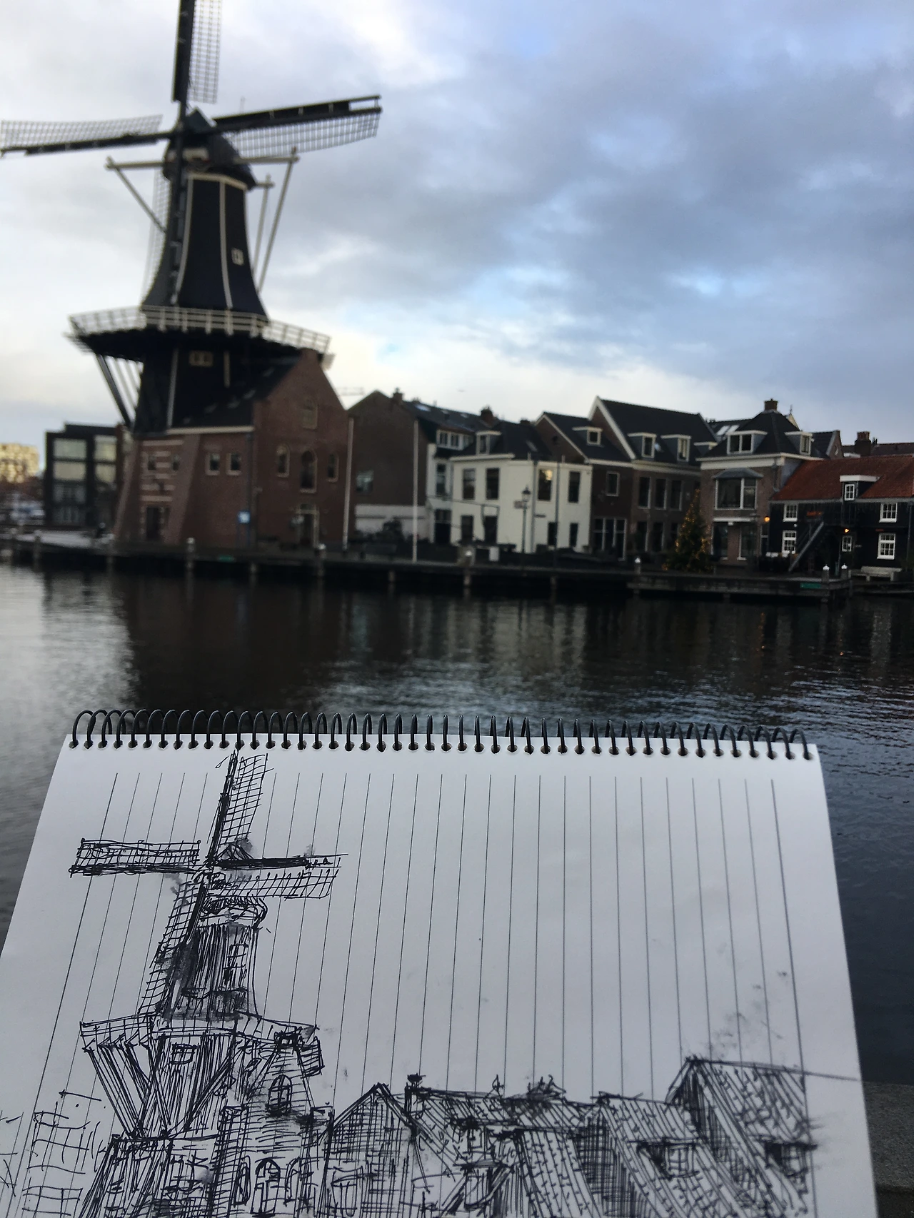 아드리안 풍차에 도착했을 때 하늘은 파랬고 구름도 적당히 하늘을 받치고 있었어. 불과 20분 쯤 후 소나기가 쏟아질 거라고는 생각지도 못했지. 네덜란드 겨울의 특징은 잦은 비와 긴 어둠. 예술가들이 복 받은 환경인가? 적어도 애주가에겐 더없이 좋은 환경임에 틀림없다는 생각이 들었어. 벤치에 걸터앉아 무념무상으로 풍차를 바라보다가 그림을 그리고 싶어져 노트와 펜을 꺼내어 끄적이고 있는데 갑자기 노트 위로 빗방울이 떨어지더니 곧이어 후드득 소나기가 쏟아졌어. 하지만 비는 오래잖아 그쳤는데 늘 그런 식이래. 문득 오다가 문득 멈추는. 먼 친척의 연락처럼.