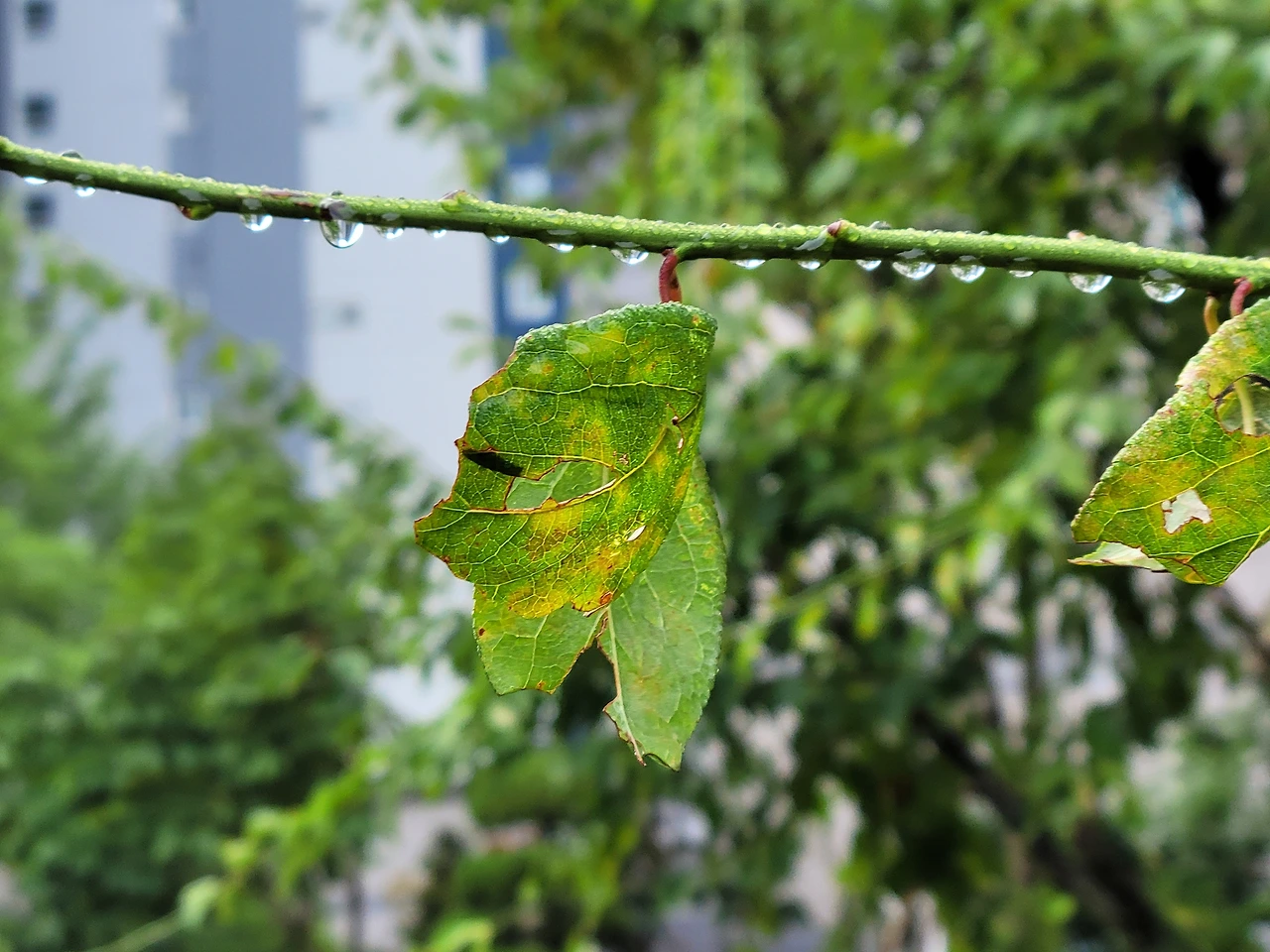 어제 내린 비로 나뭇잎에 빗방울이 맺히고, 촉촉이 젖어있었다.
