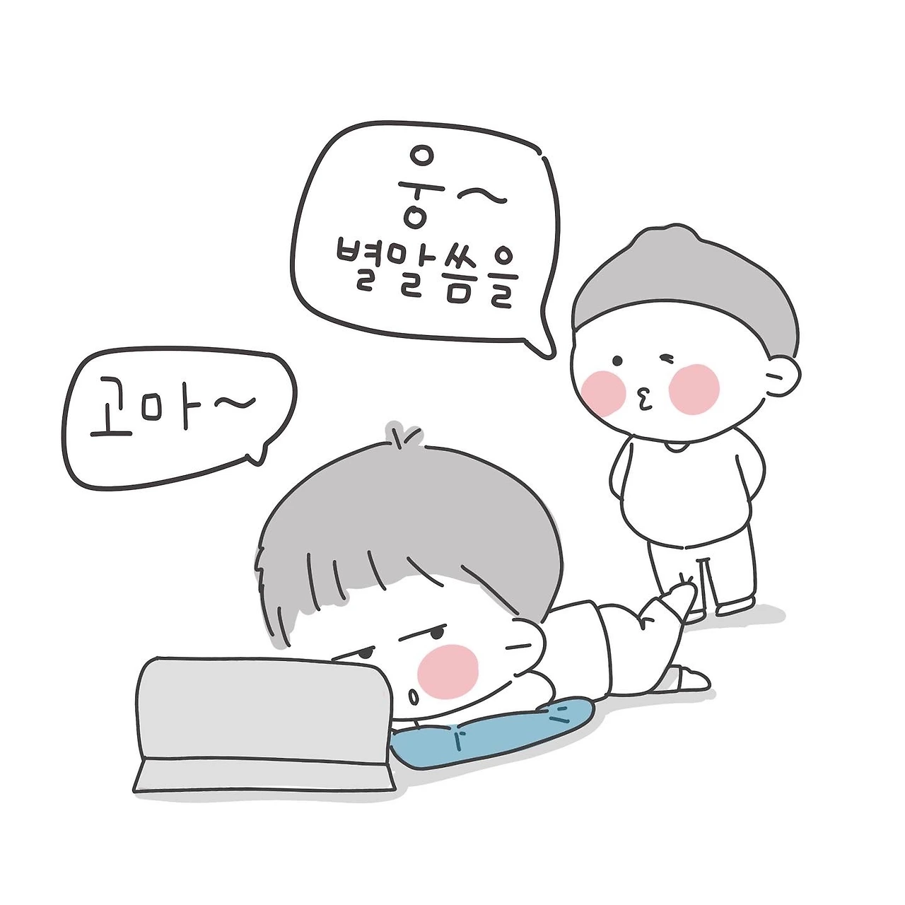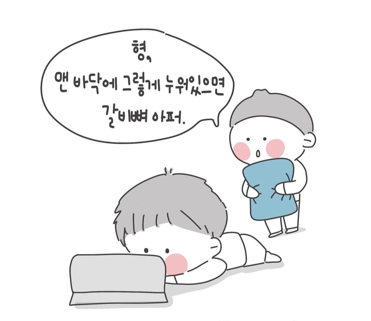 "형, 맨바닥에 그렇게 누워있으며 갈비뼈 아파."