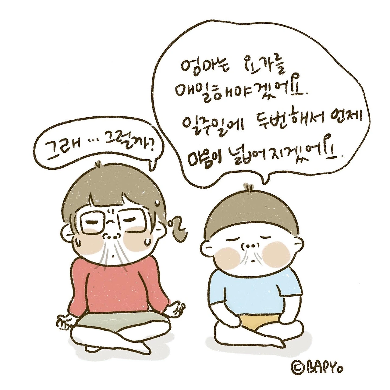 "아직 멀었네. 엄마는 요가를 매일 가야 할 것 같아요.