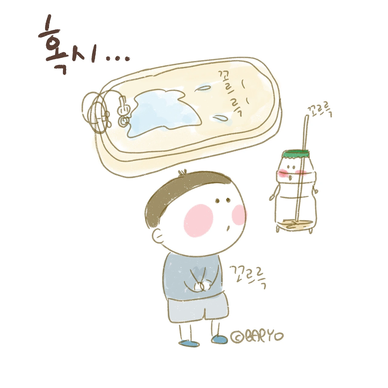 밥, 콩나물, 멸치볶음, 삼겹살, 스팸, 김치가 다 빠져나가면