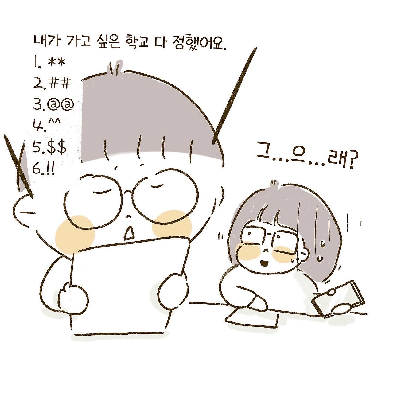 이미 다 결정하고 그대로 원서에 적어달란다.