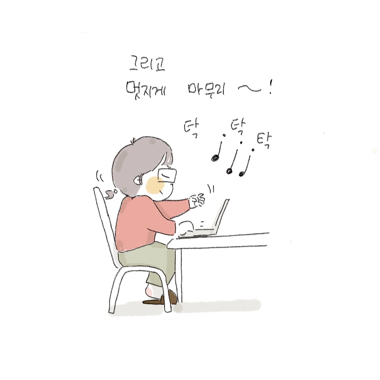 느낌 가는 대로, 손가락이 닿는 대로 키보드를 눌러대고~