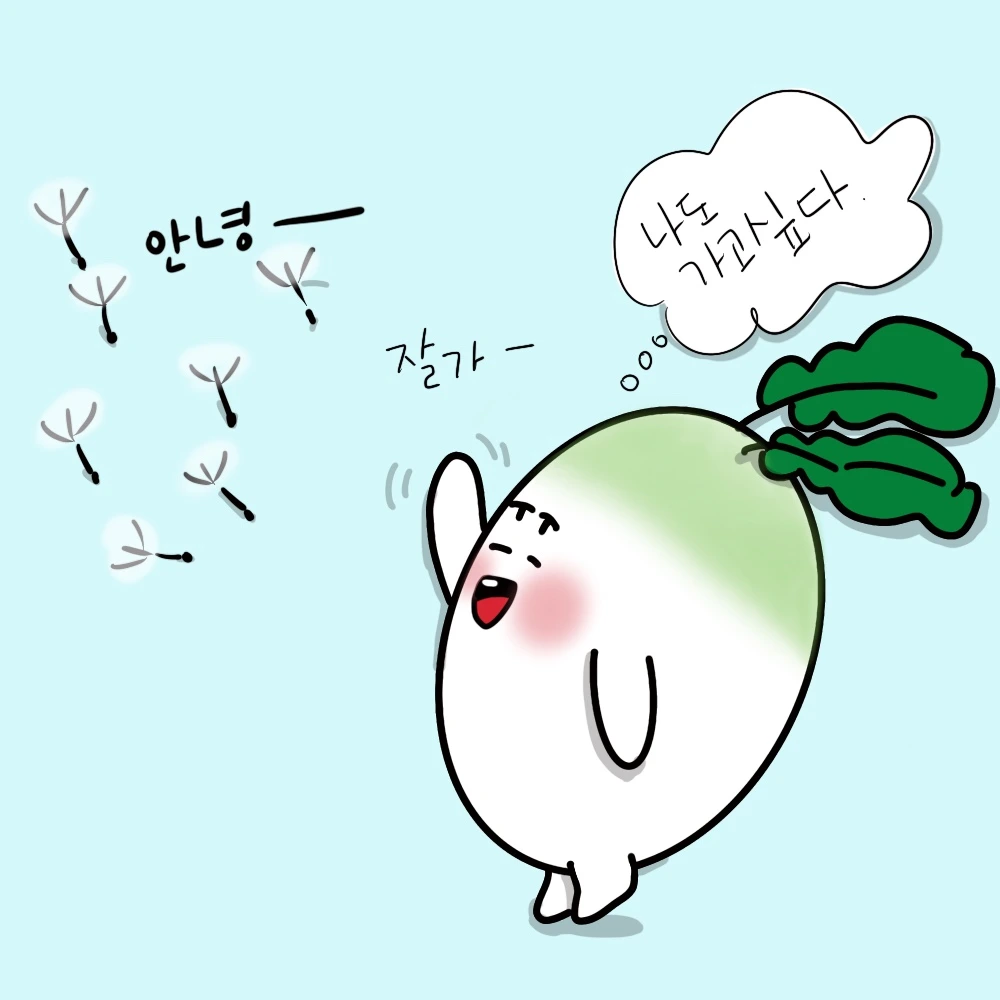 작은 목소리가 들리는 쪽으로 눈을 돌리니 민들레 씨 뭉치가 내 입을 바라보고 있었다.